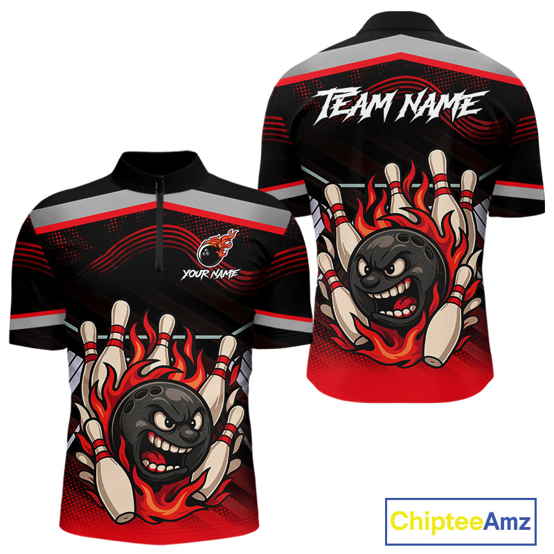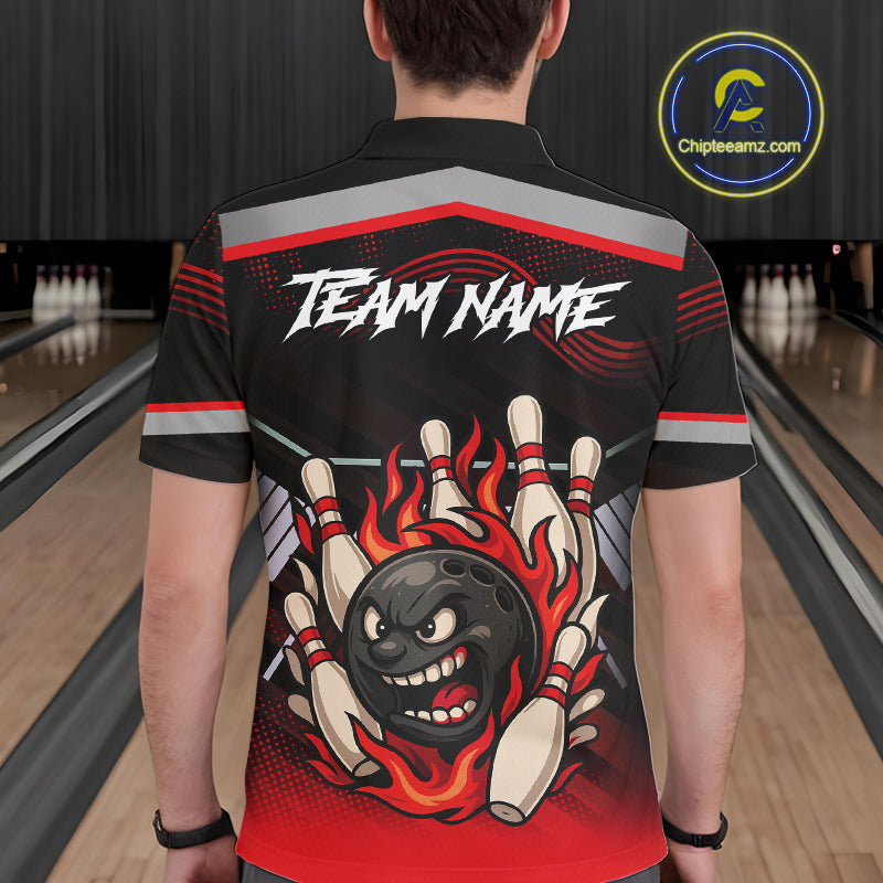 Black and Red Flame Funny Bowling Ball and Pins Bowling shirts for men custom team bowling outfits NQS10985