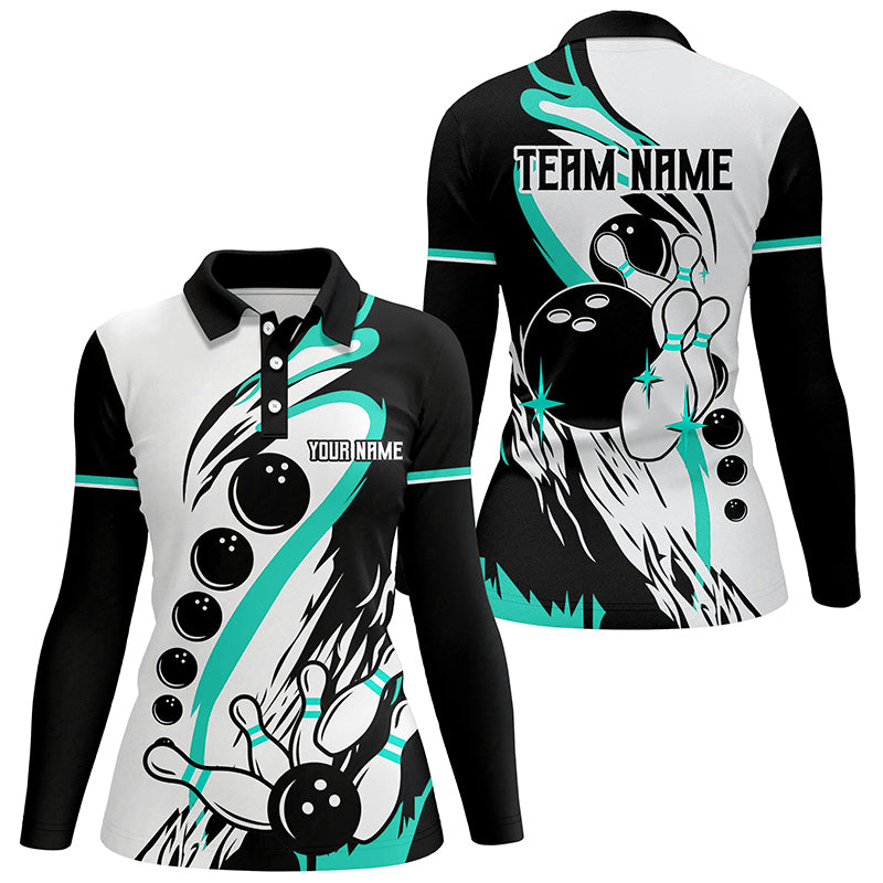 Black and white retro bowling league jerseys custom Women Bowling Shirts, gifts for bowlers| Turquoise NQS8229