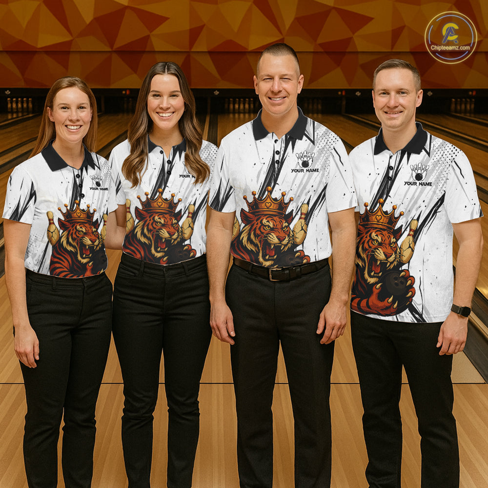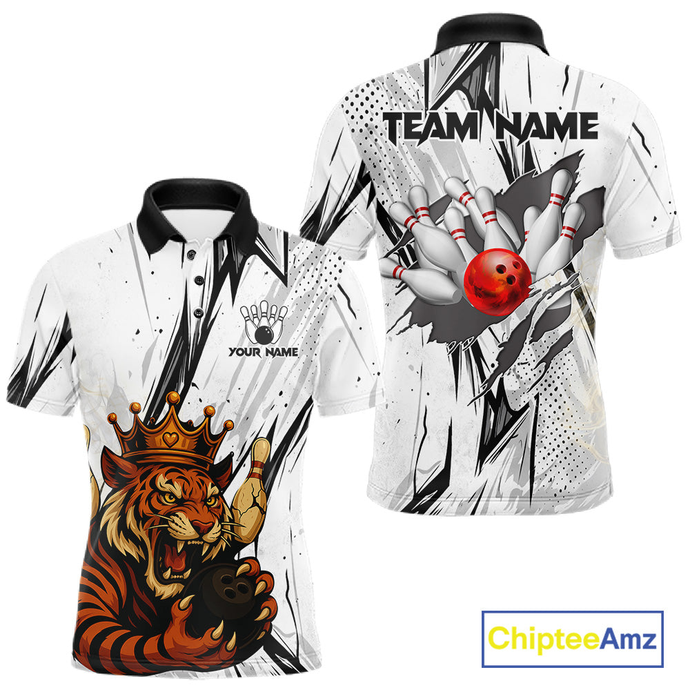 Black and White Tiger Bowling polo, 1/4 zip Shirts for Men Custom Tiger Bowling Team jerseys NQS11298