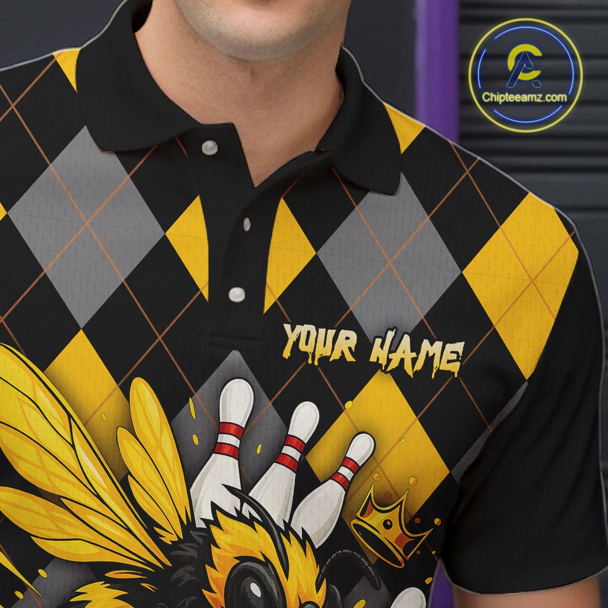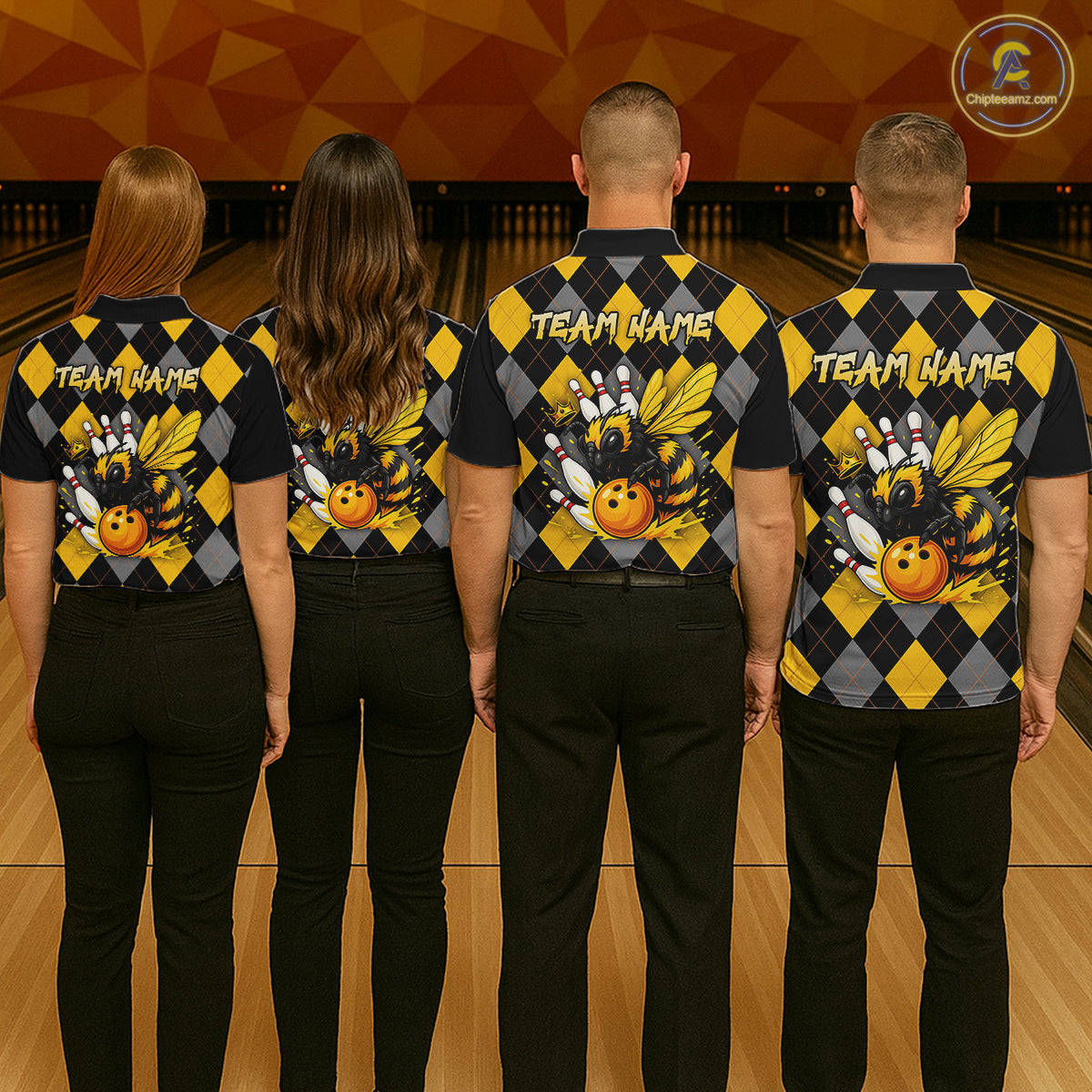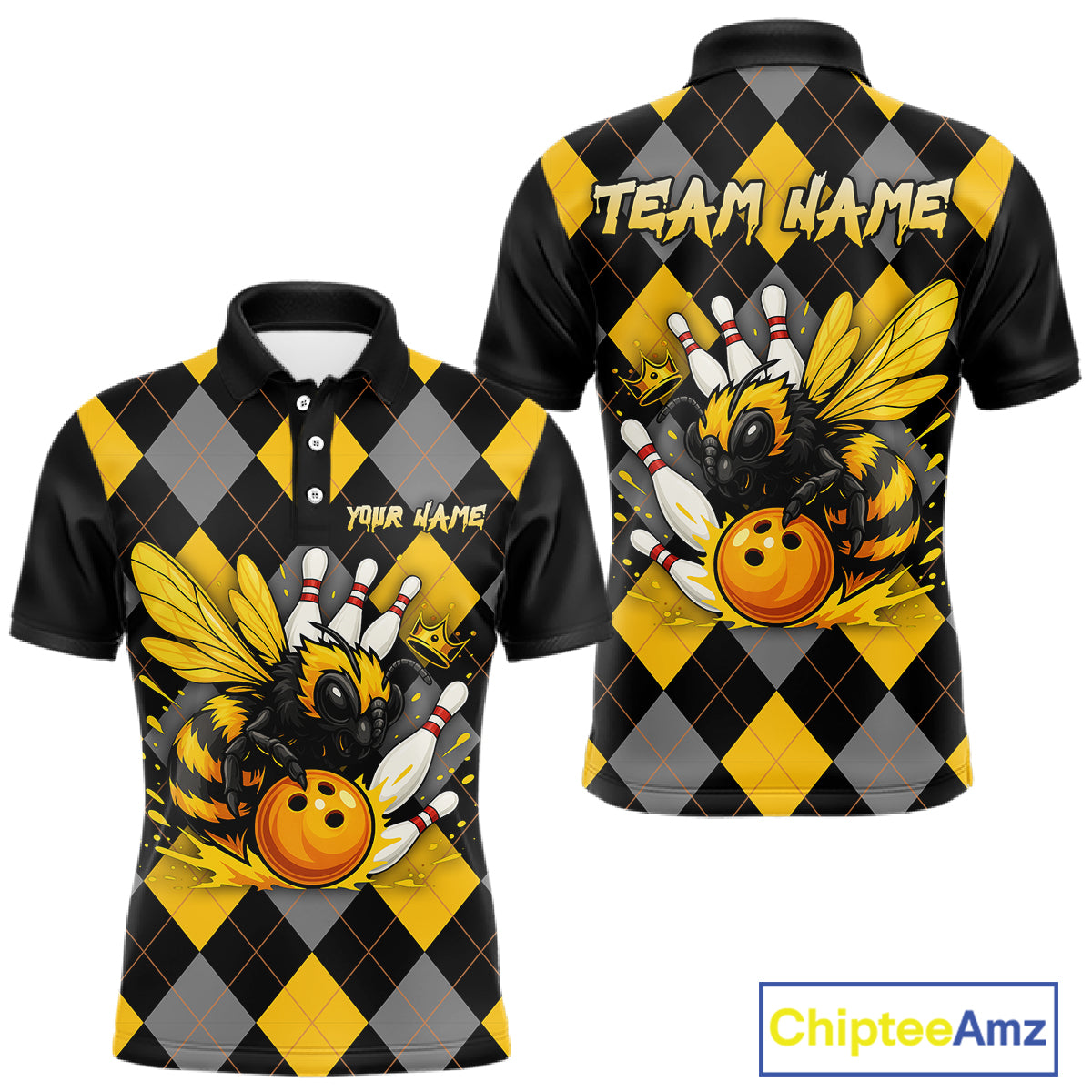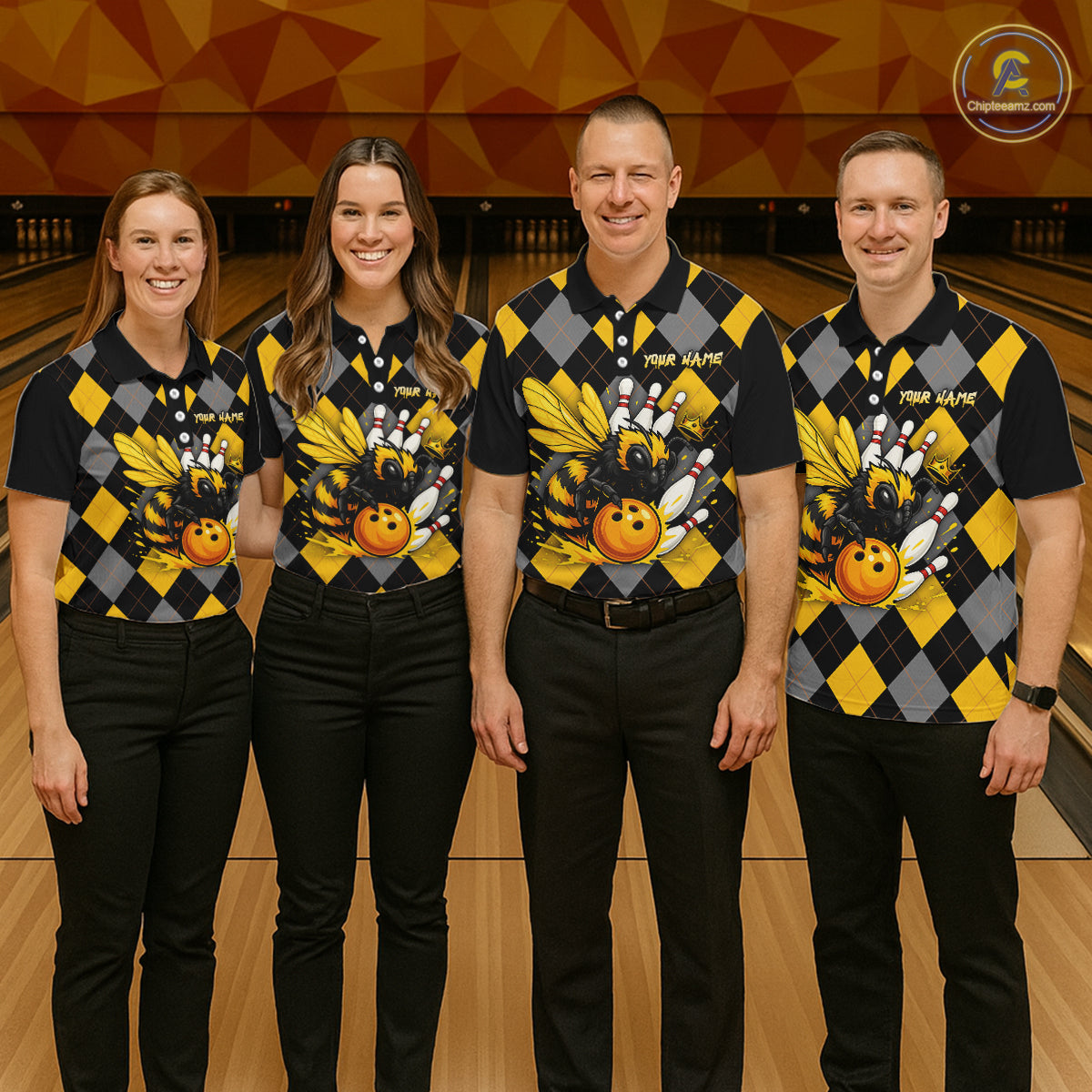 Black and Yellow argyle pattern Honey Bee Bowling shirts for Men Custom Team bowling jerseys NQS11250