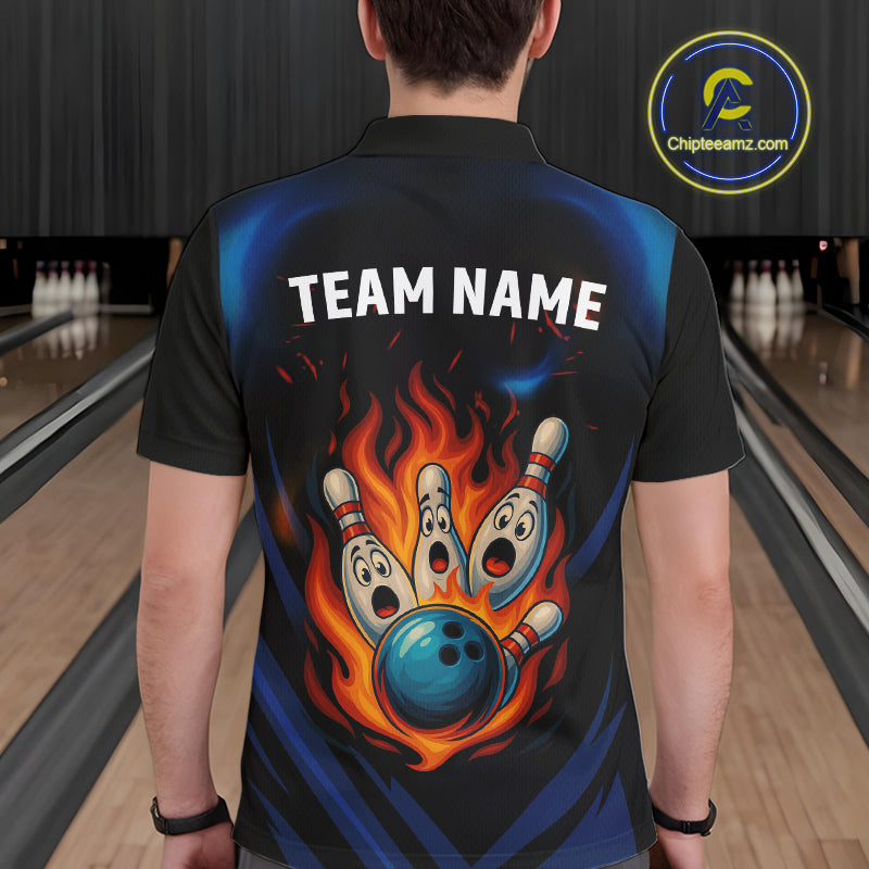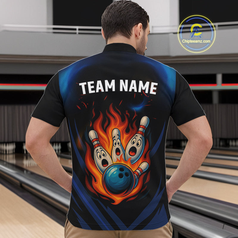 Blue and Black Flame Bowling shirts for Men custom funny bowling ball and pins team bowler jerseys NQS10260