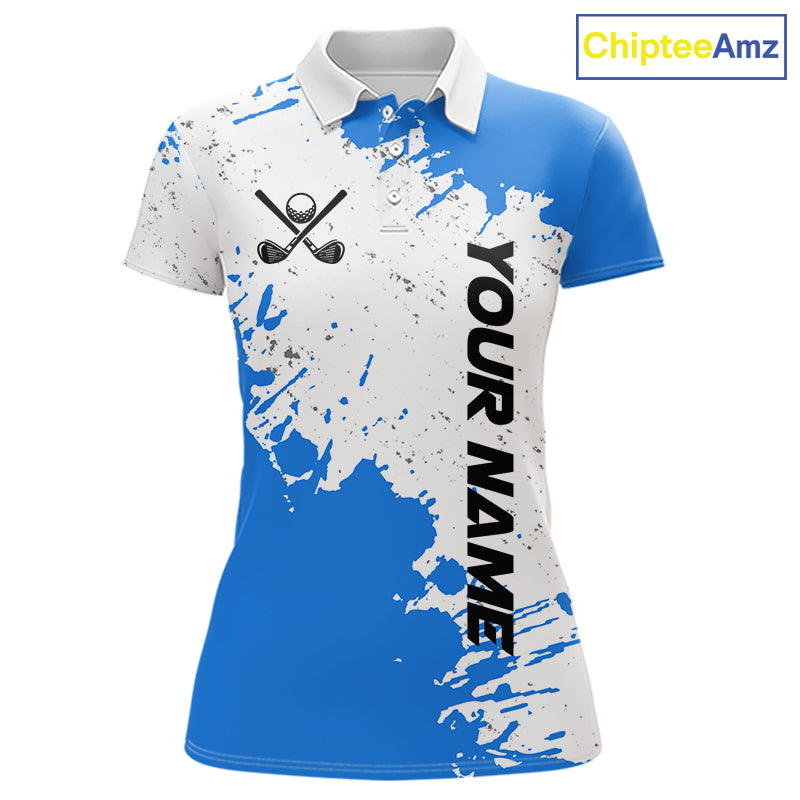 Blue and White matching golf polo shirts for couples Custom team golf outfit, couple golf attire NQS11316