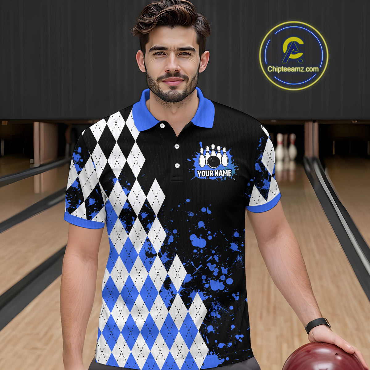 Blue argyle pattern Retro Bowling Shirts For Men Custom My drinking team has a bowling problem NQS9824