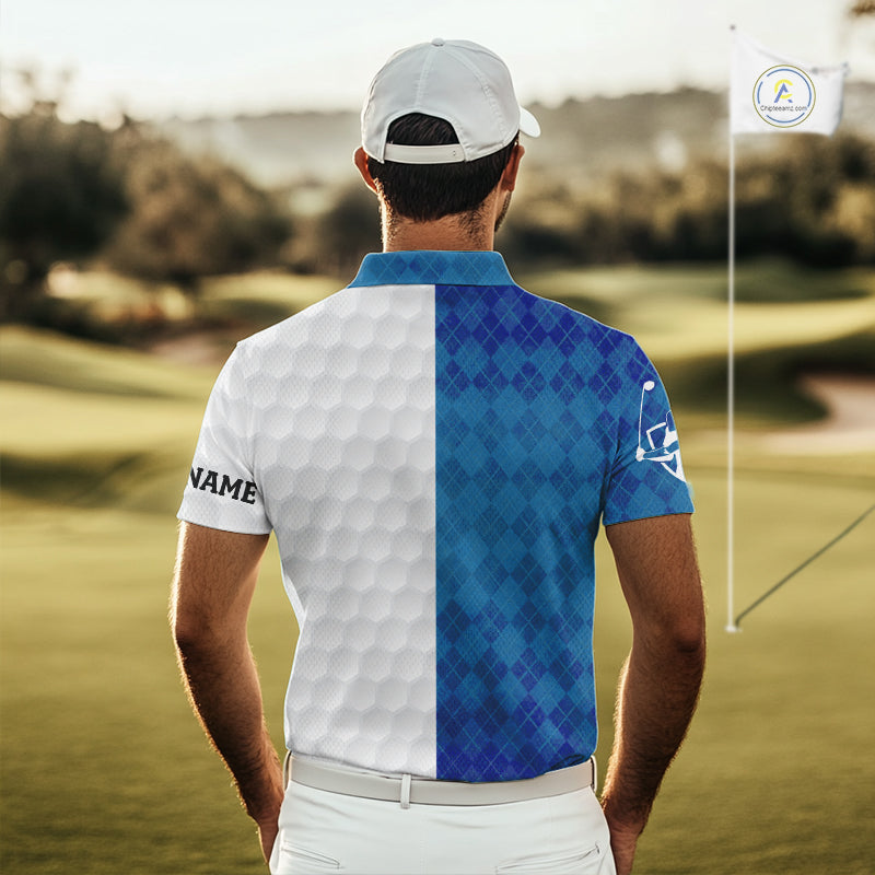 Blue argyle white Men golf polo shirt custom I was one under today one under a tree, a bush and water NQS10090