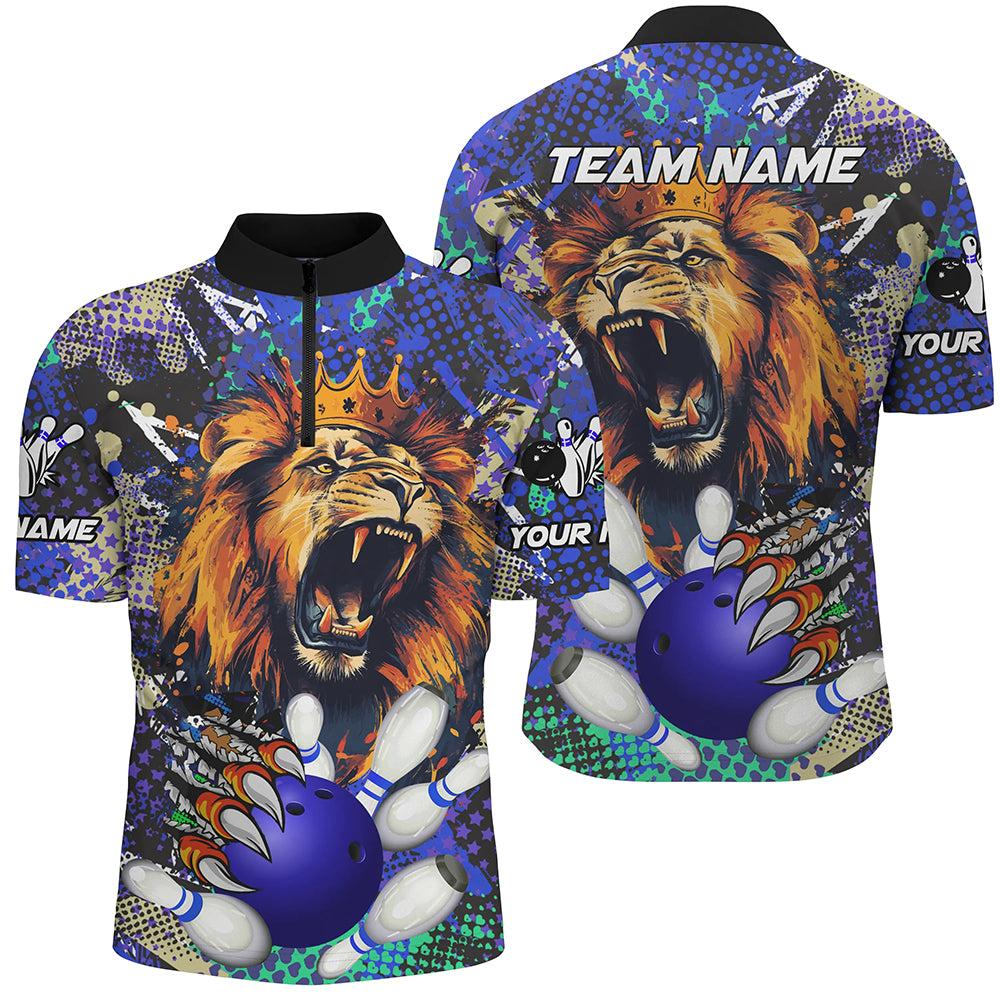 Blue Camo Lion roar Bowling Polo, Quarter Zip Shirts for Men Custom Lion Bowling Team jerseys NQS9293