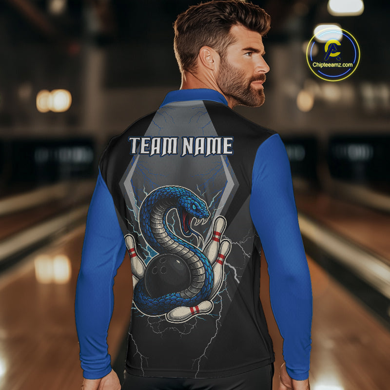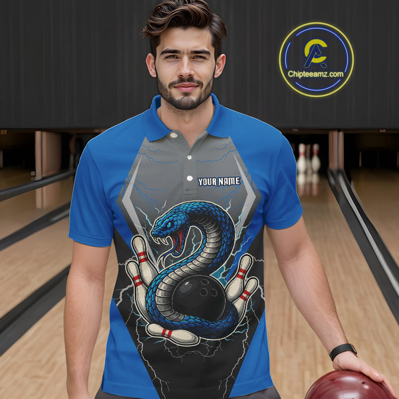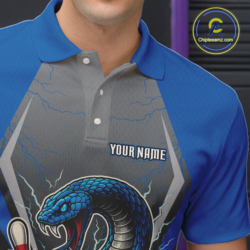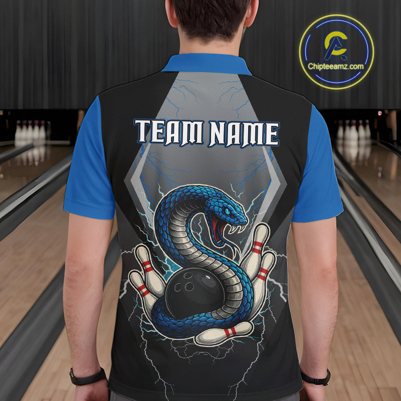 Blue Lightning Thunder Cobra Snake Custom Bowling Shirts For Men, Bowling Team Shirt With Names NQS9851