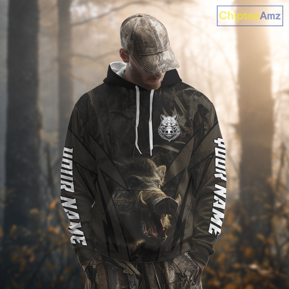 Boar Hunting Custom Name Brown Camouflage Hunting Clothes, Boar Hunting Outfit, Hunting Gifts NBT169