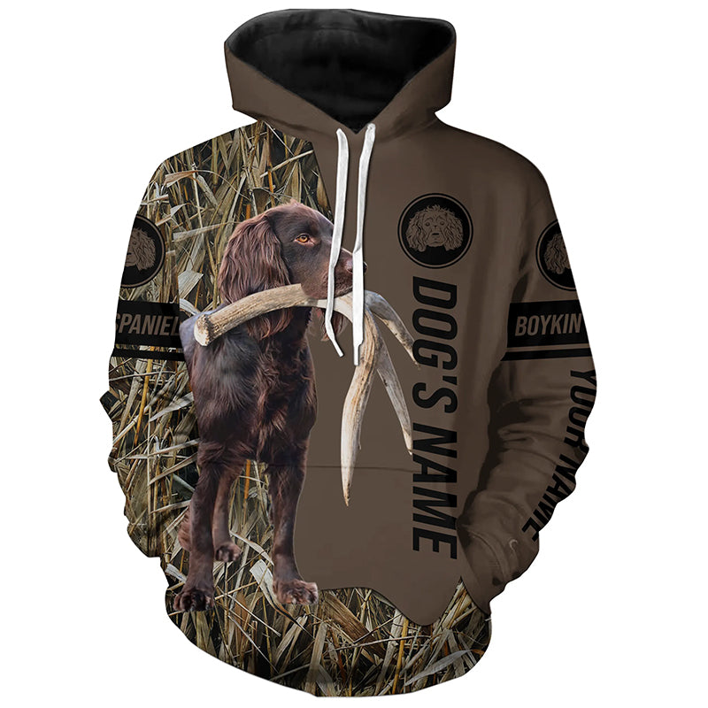 Boykin Spaniel Hunting dog customized Name Shirt, camo and brown color FSD4676