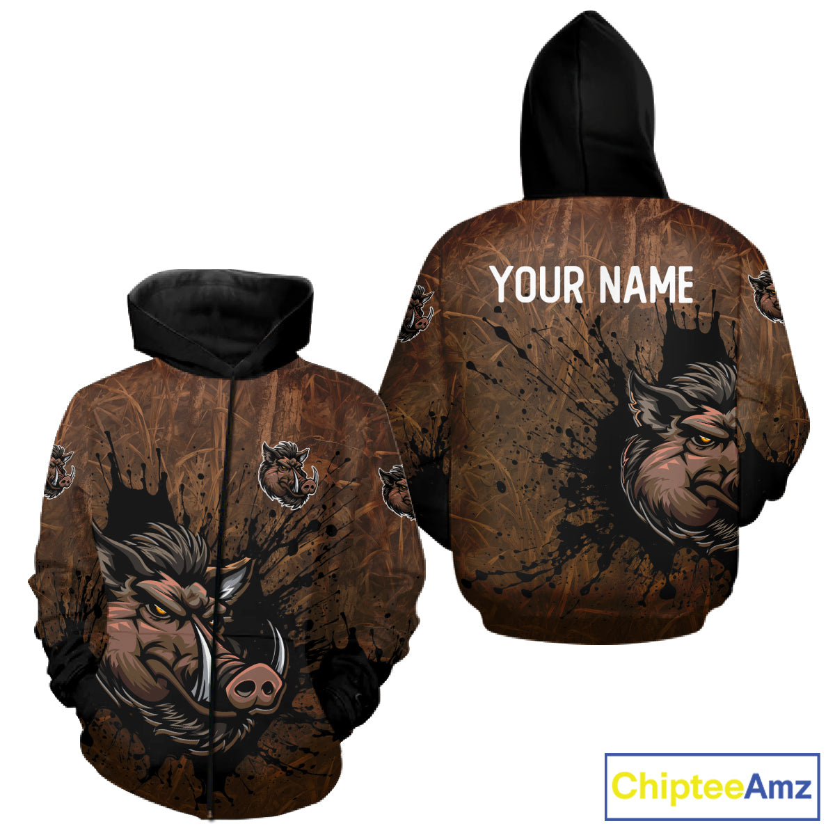 Brown Camo Boar Hunting 3D All Over Printed Shirts, Custom Boar Hunting Outfit, Hunting Gifts NBT212