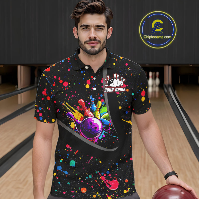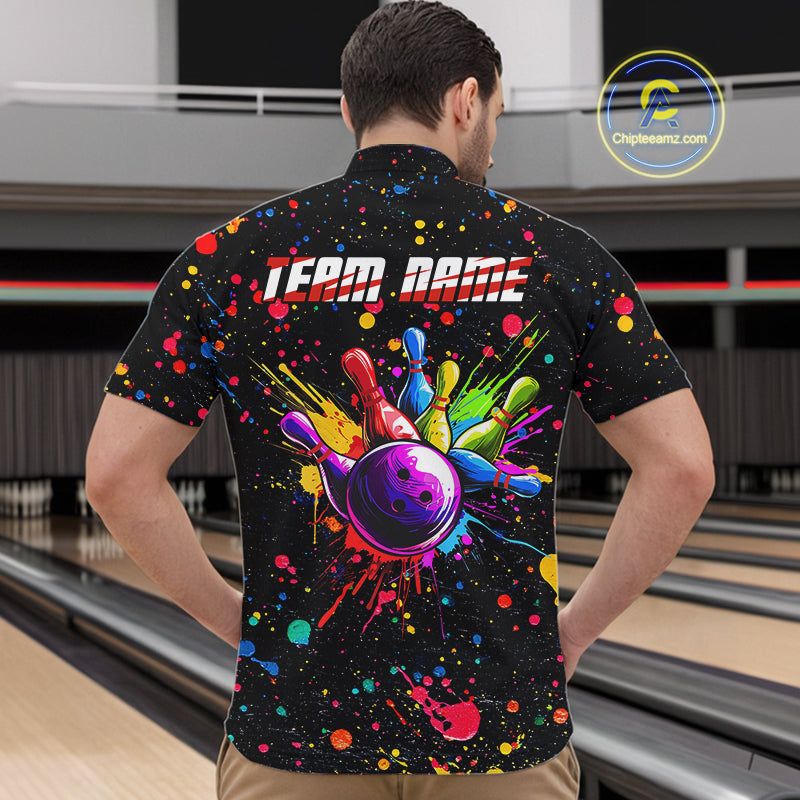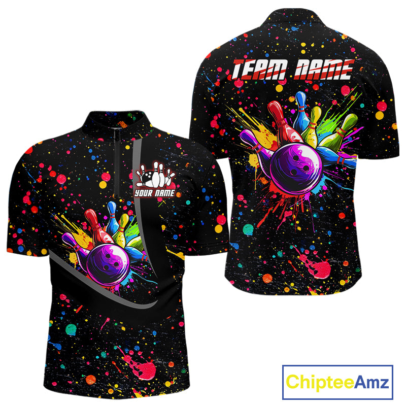 Colorful bowling jerseys Bowling Polo, 1/4 Zip Shirt for Men Custom Bowling Team shirts for bowlers NQS10363