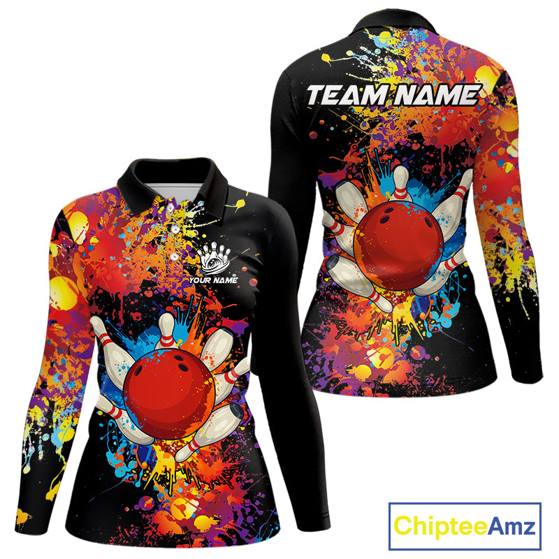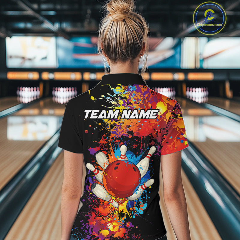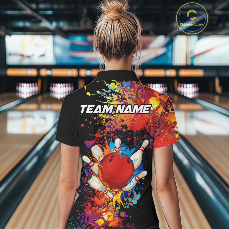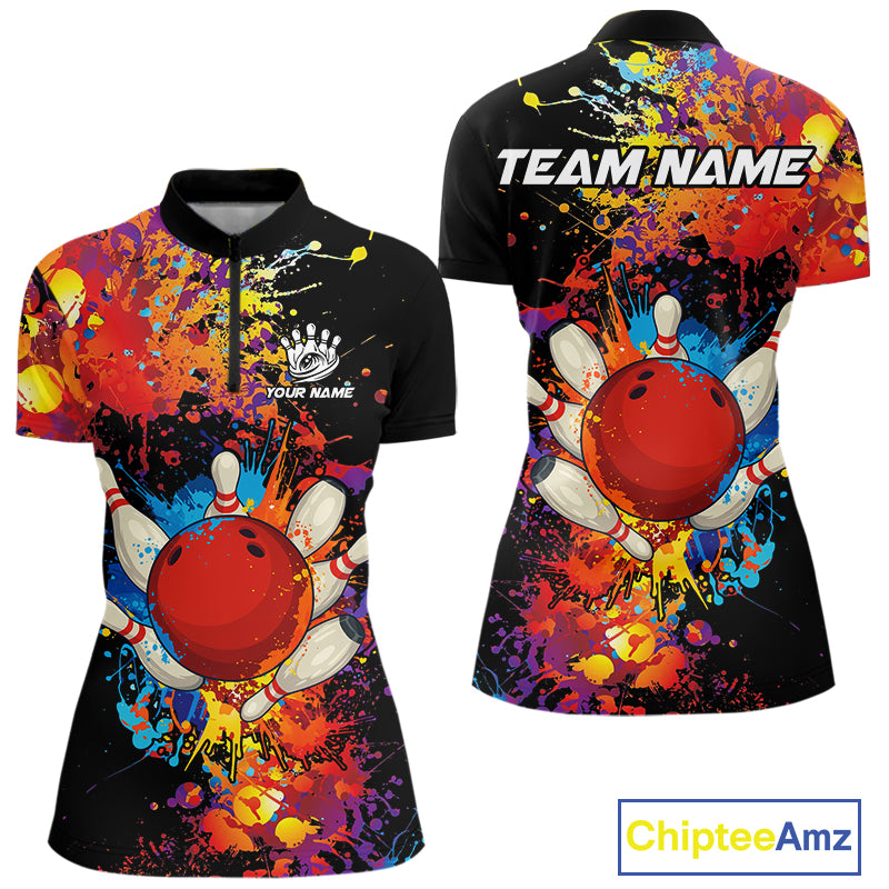 Colorful bowling jerseys Bowling Polo, 1/4 Zip Shirt for Women Custom Bowling Team shirts for bowlers NQS10416