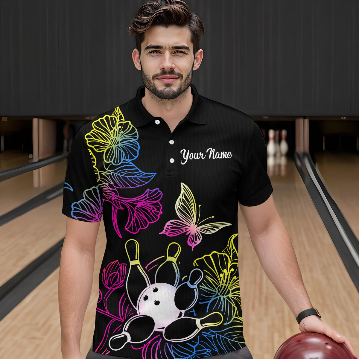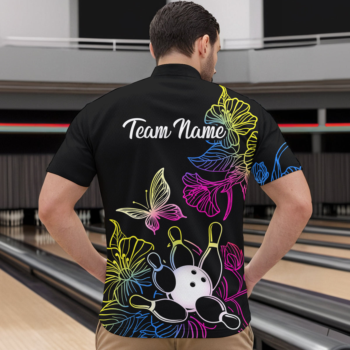 Colorful Butterflies Bowling Shirt for Men Bowling Team Jersey Shirts Polo & Quarter-Zip HNT27