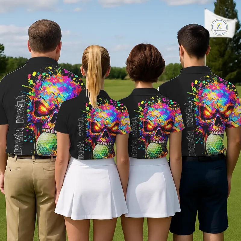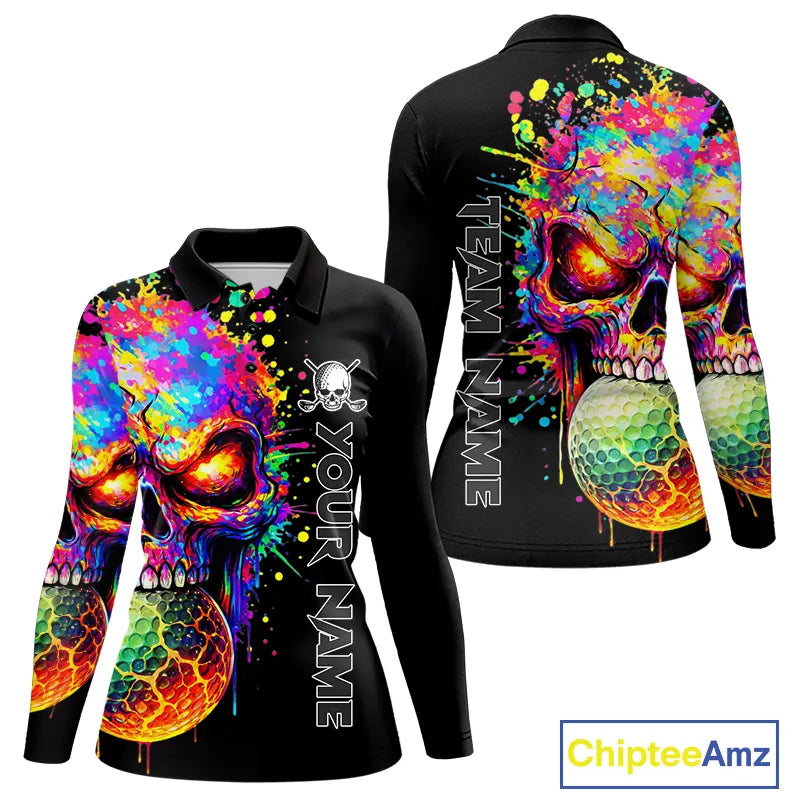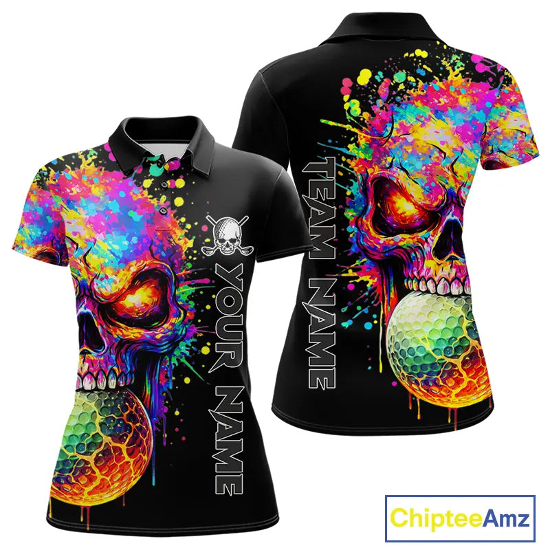 Colorful Skull Golf jerseys Black Golf polo shirts For Women Custom Team ladies golf clothes NQS11318