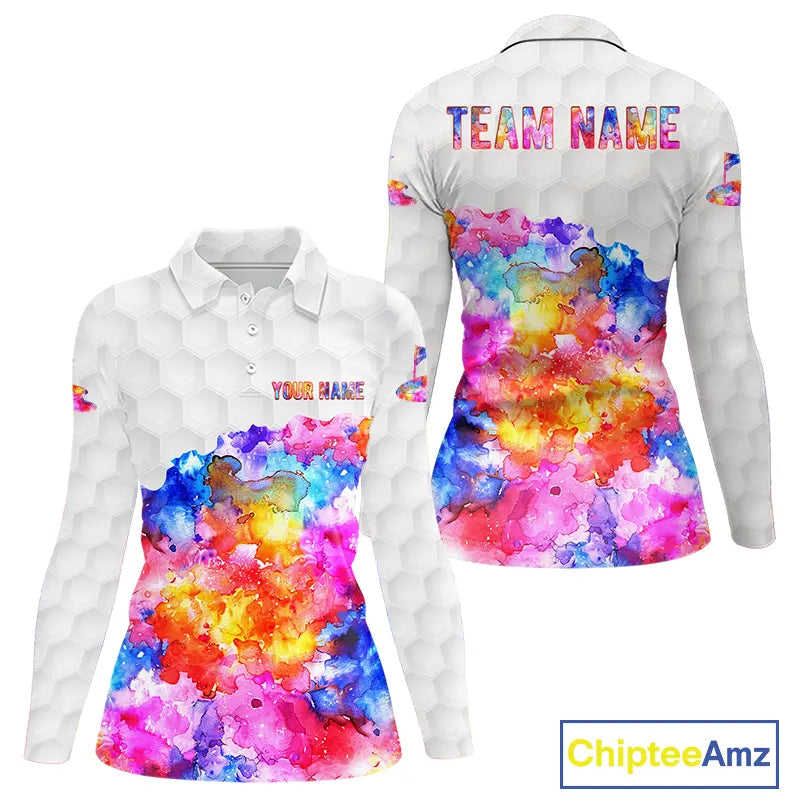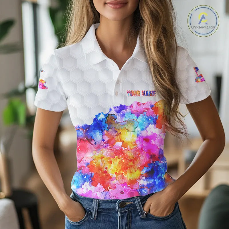 Colorful watercolor Womens Golf polo shirts Custom team golf outfit, Personalized ladies golf top NQS11315