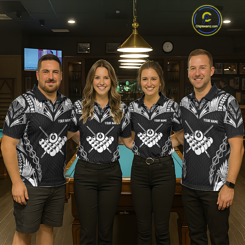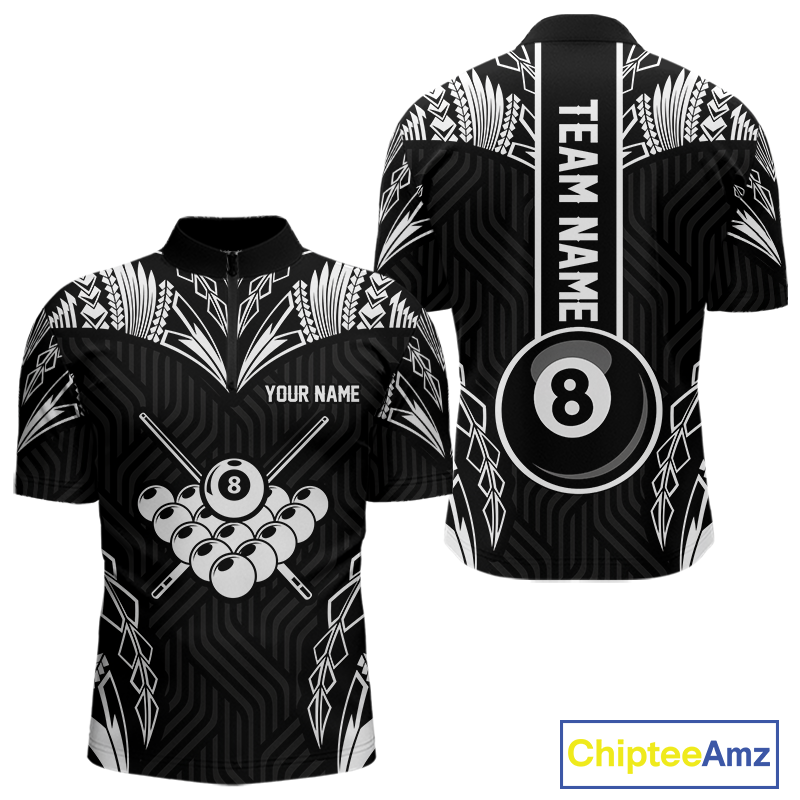 Custom 8 Ball Tribal Pattern Billiard Shirts for Men Billiard Team Shirts Billiard League Polo & 1/4 Zip NNT95