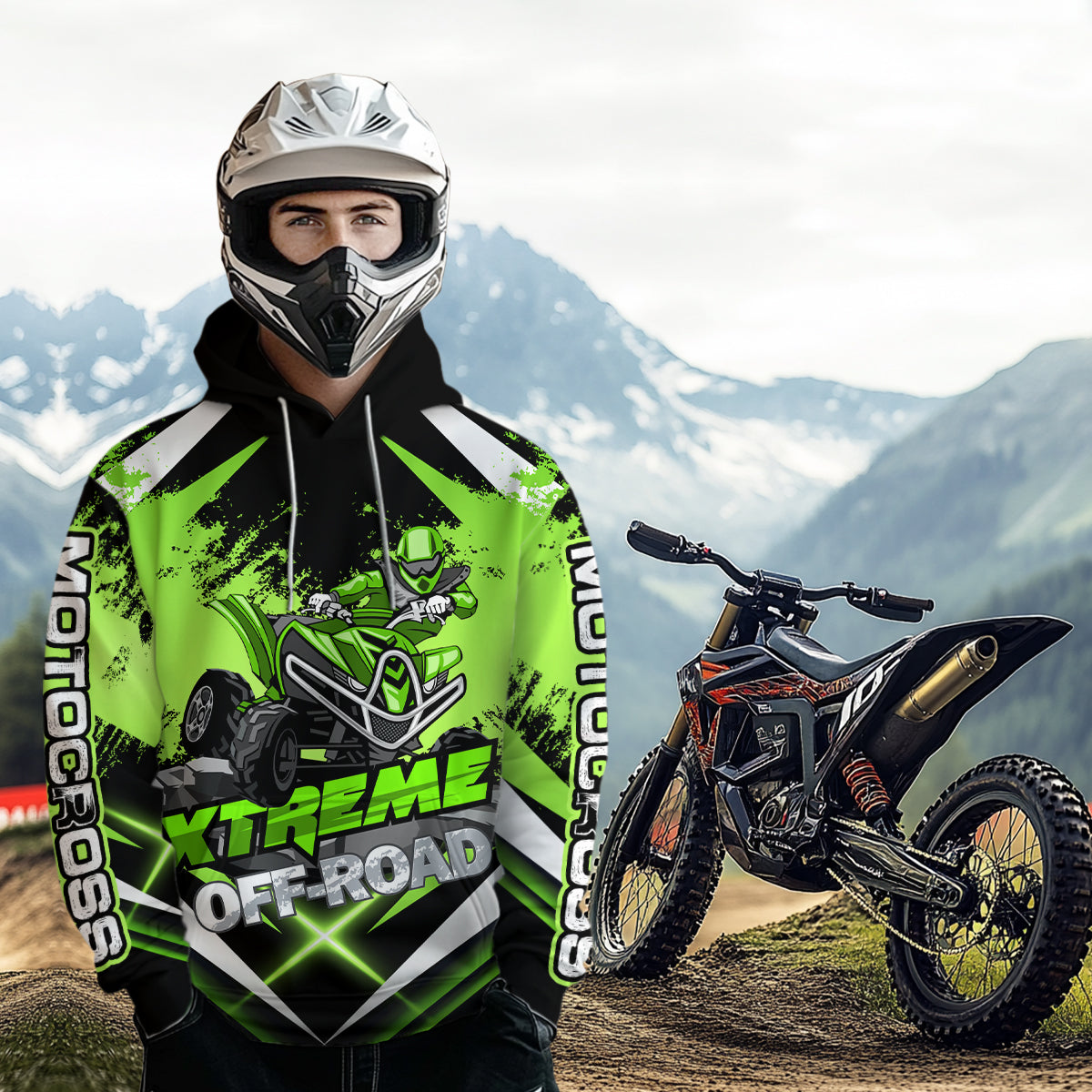 Custom ATV Motocross Hoodie for Men Women Quad Shirt Green ATV Riding Hoodie MHATV18