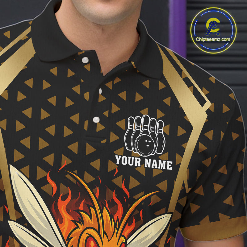Custom Black and Gold Bee Bowling Polo, Quarter Zip Shirts For Men, Bee Bowling Team Bowlers Outfit NQS10911
