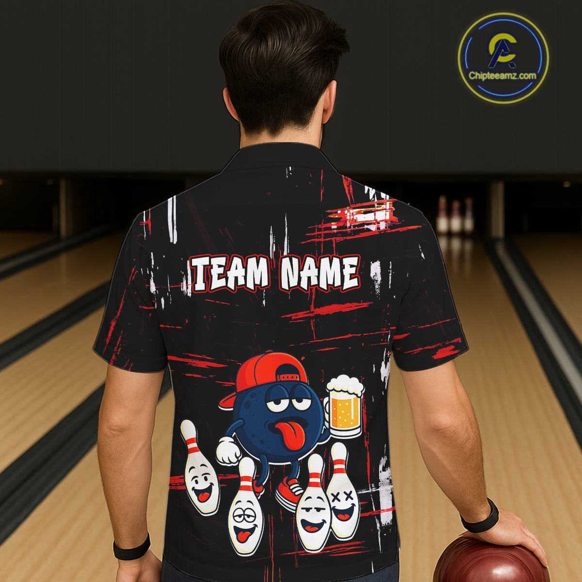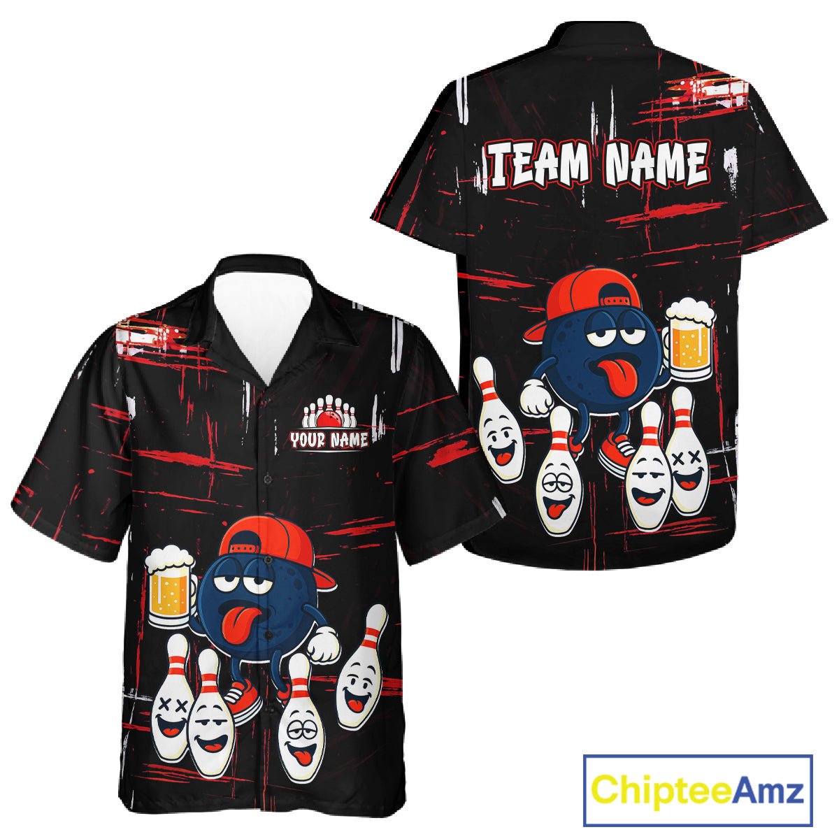 Custom Black And Red Funny Beer Hawaiian bowling jersey, funny bowling shirts NQS11490