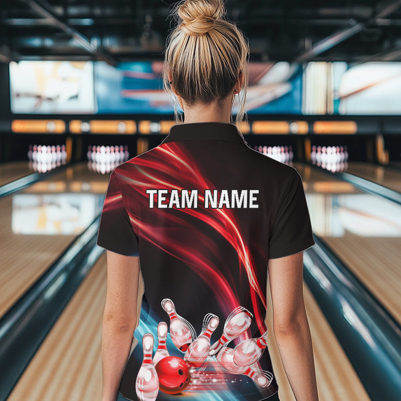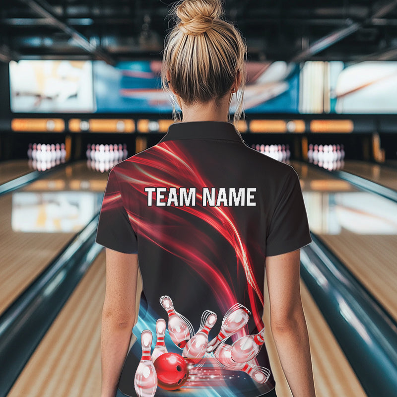 Custom Black and Red Women bowling Polo, Quarter Zip Shirts, team bowling outfits for women NQS9701