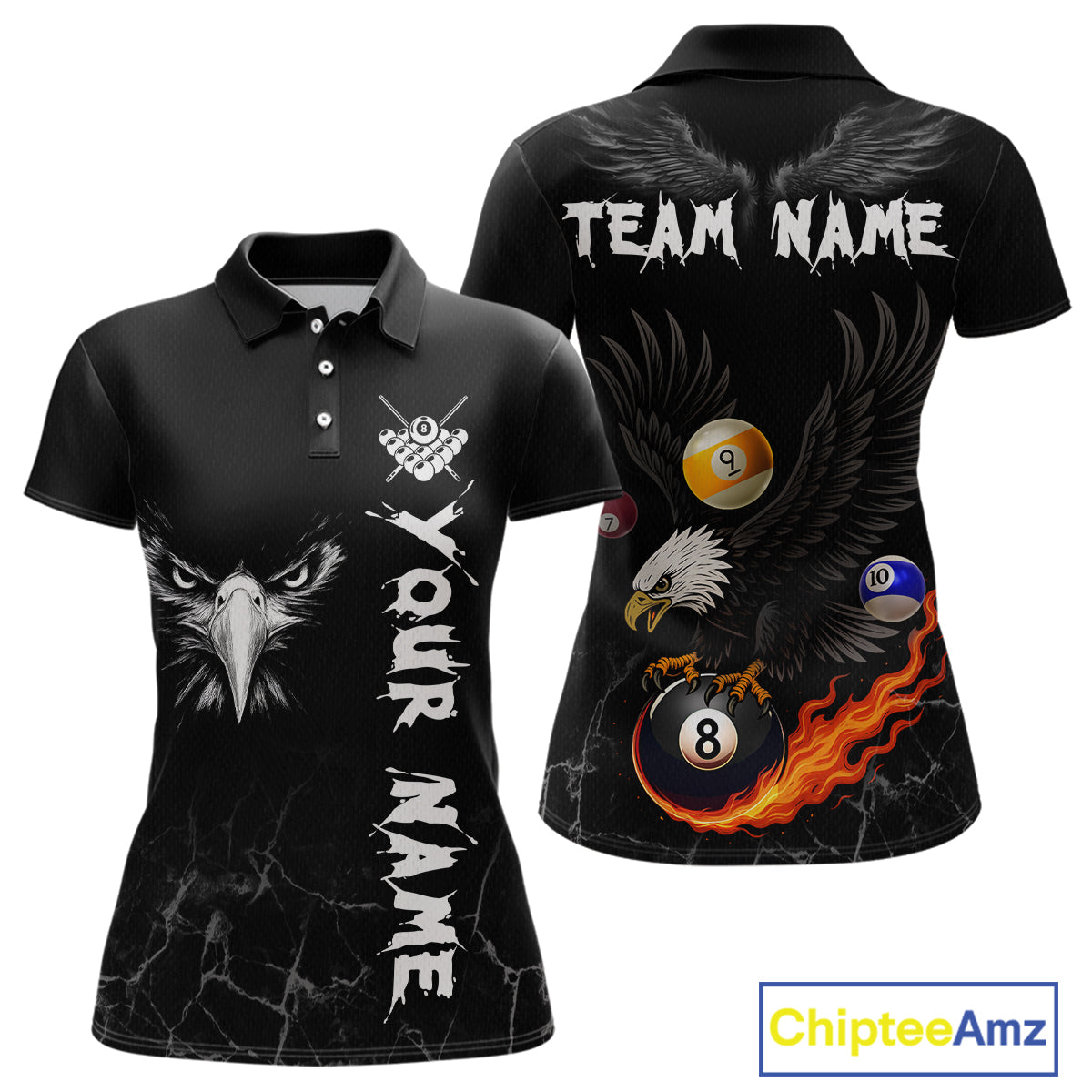 Custom Black Eagle 8 Ball Billiard Shirts for Women Billiard Team Jerseys Polo & 1/4 Zip Shirts NNT52