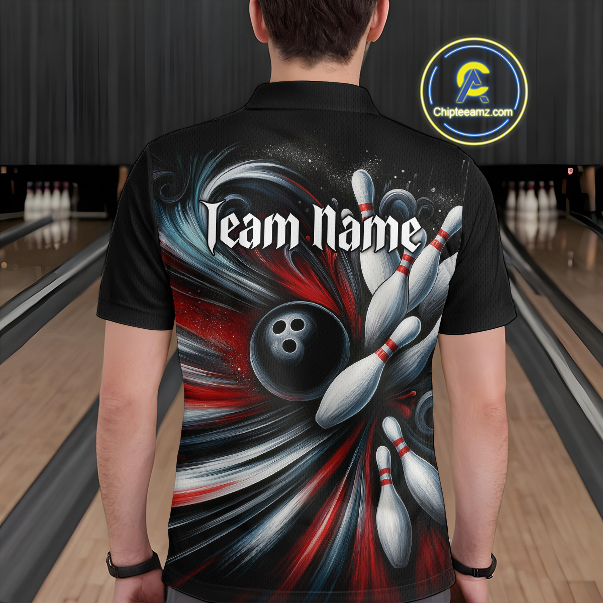 Custom Black Red Bowling Jersey for Men Custom Team Bowling Shirts Polo & 1/4 Zip HNT120