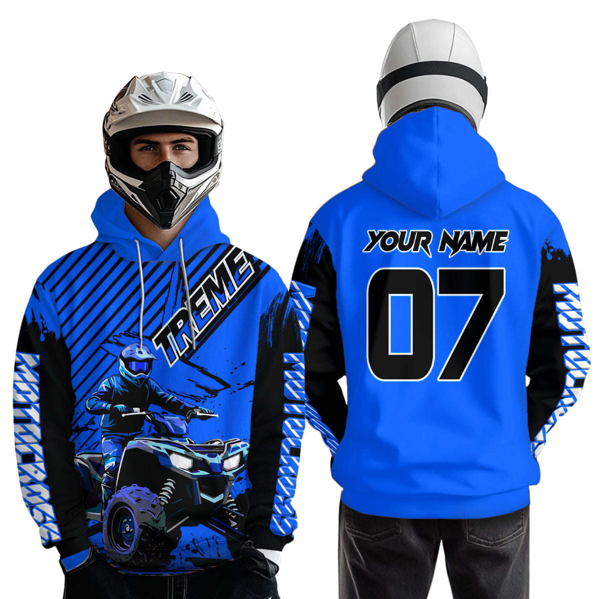 Custom Blue ATV Racing Hoodie UPF30+ Motocross Hoodie Men Women Extreme Riding Sweatshirt for Kids MHT200