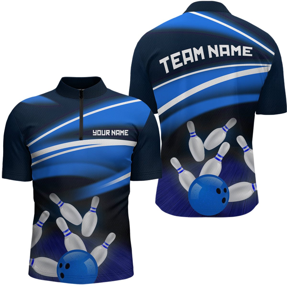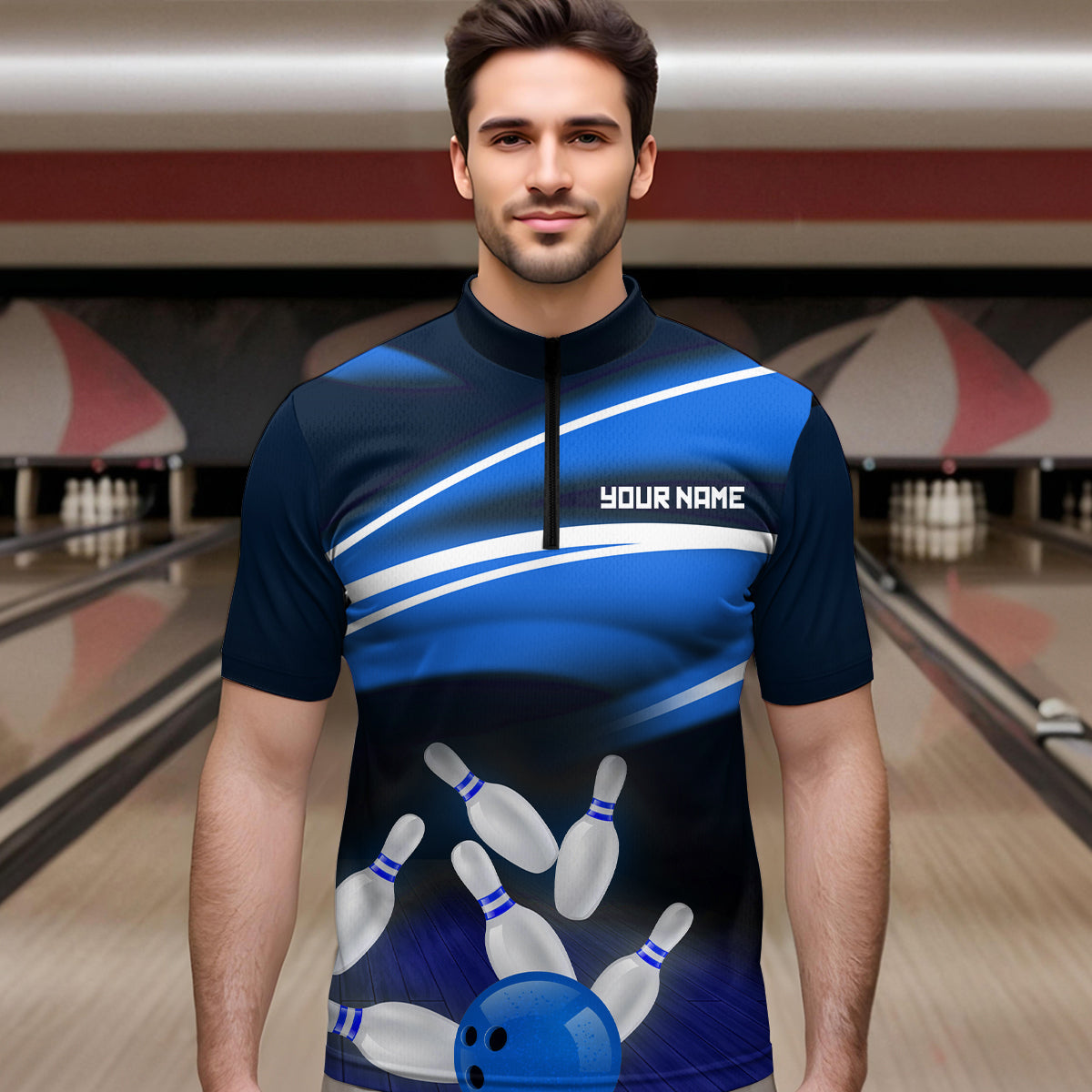 Custom Blue Bowling Jersey Bowling Team Shirts For Men Bowling League Polo & 1/4 Zip HNT163