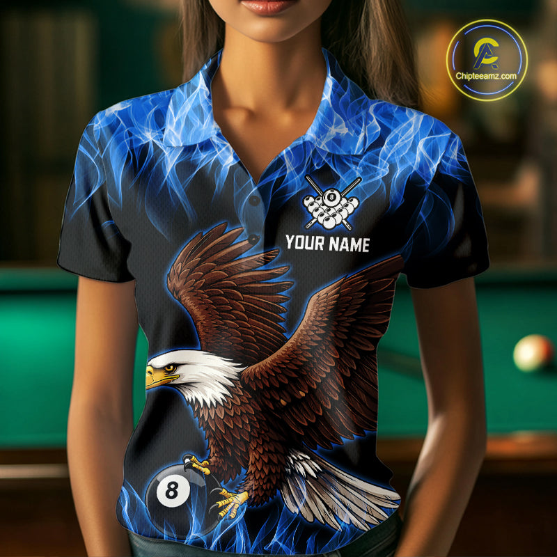 Custom Blue Flame Eagle 8 Ball Billiard Shirts for Women Billiard League Billiard Team Shirts NNT107