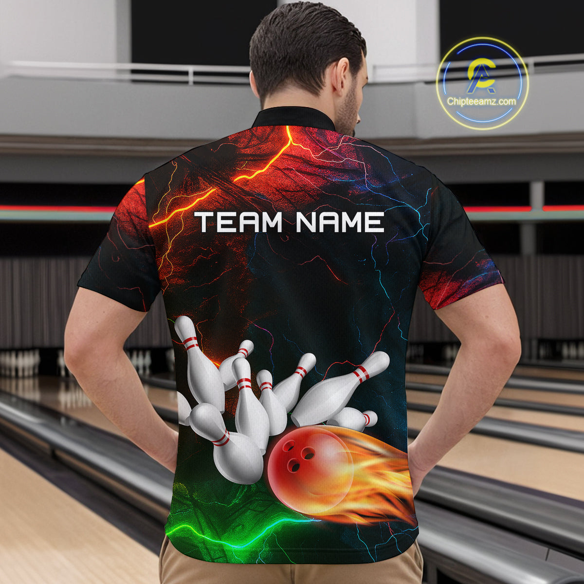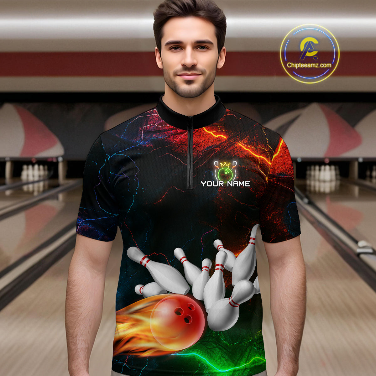 Custom Colorful Lightning Bowling Jersey for Men Bowling Uniform Polo & 1/4 Zip Bowling Team Shirts HNT113