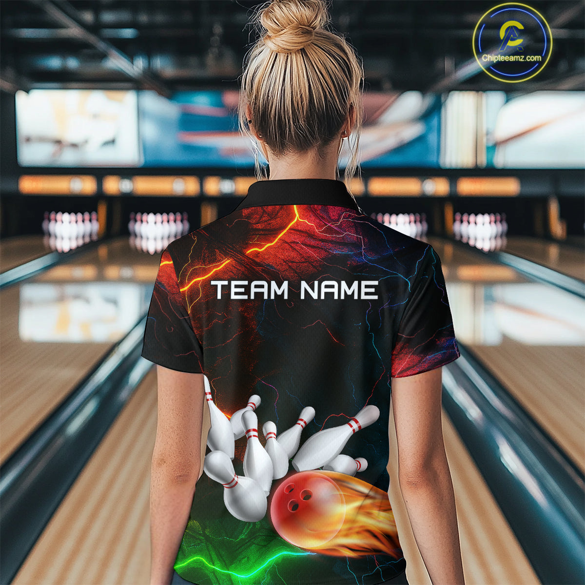 Custom Colorful Lightning Bowling Jersey for Women Bowling Uniform Polo & 1/4 Zip Bowling Team Shirts HNT113