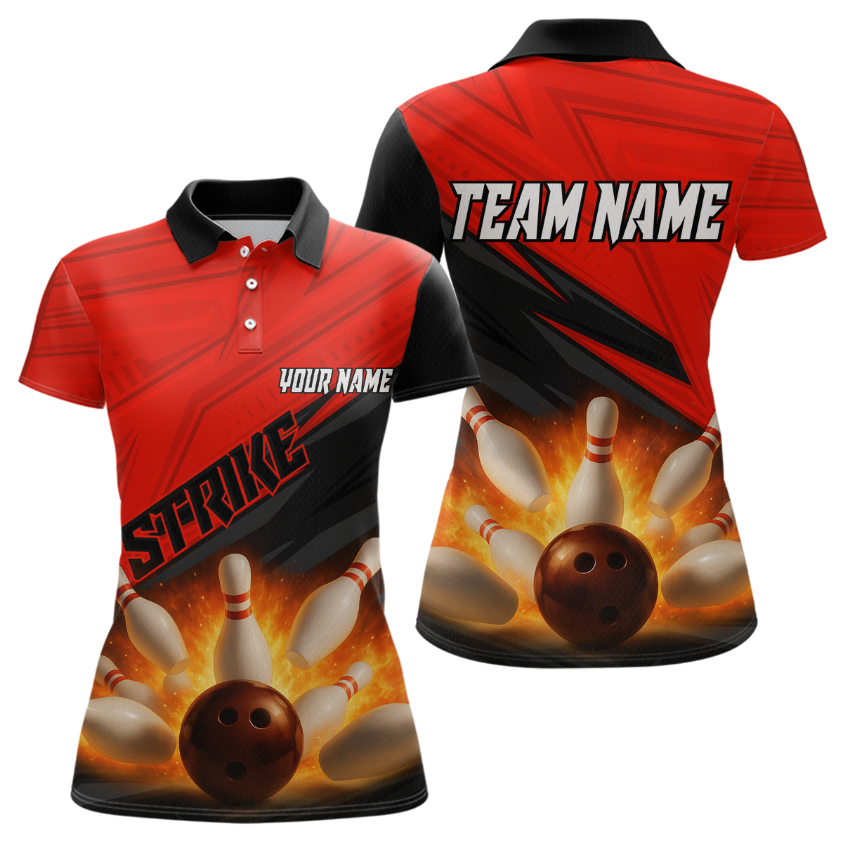 Custom Flaming Red Bowling Shirts for Women Men Team Bowling Polo & Quarter Zip MBL99