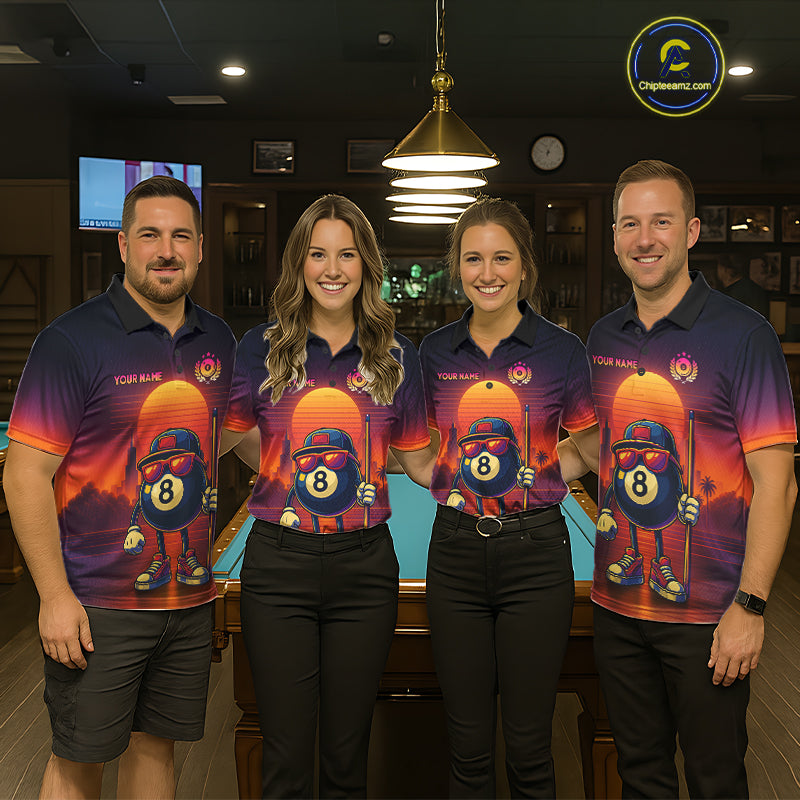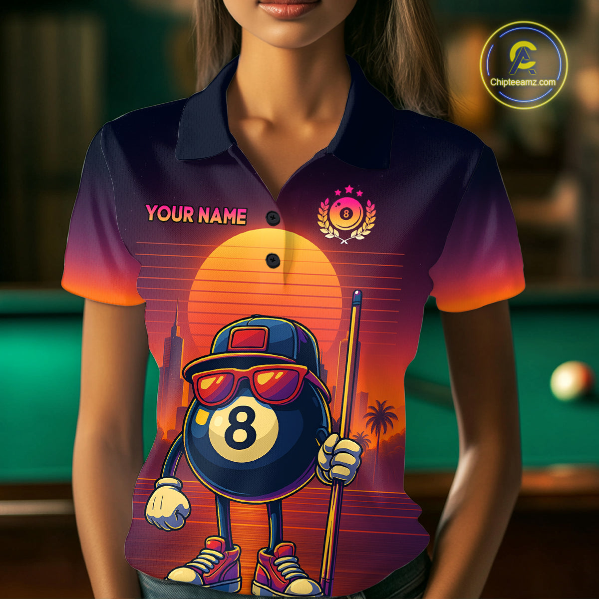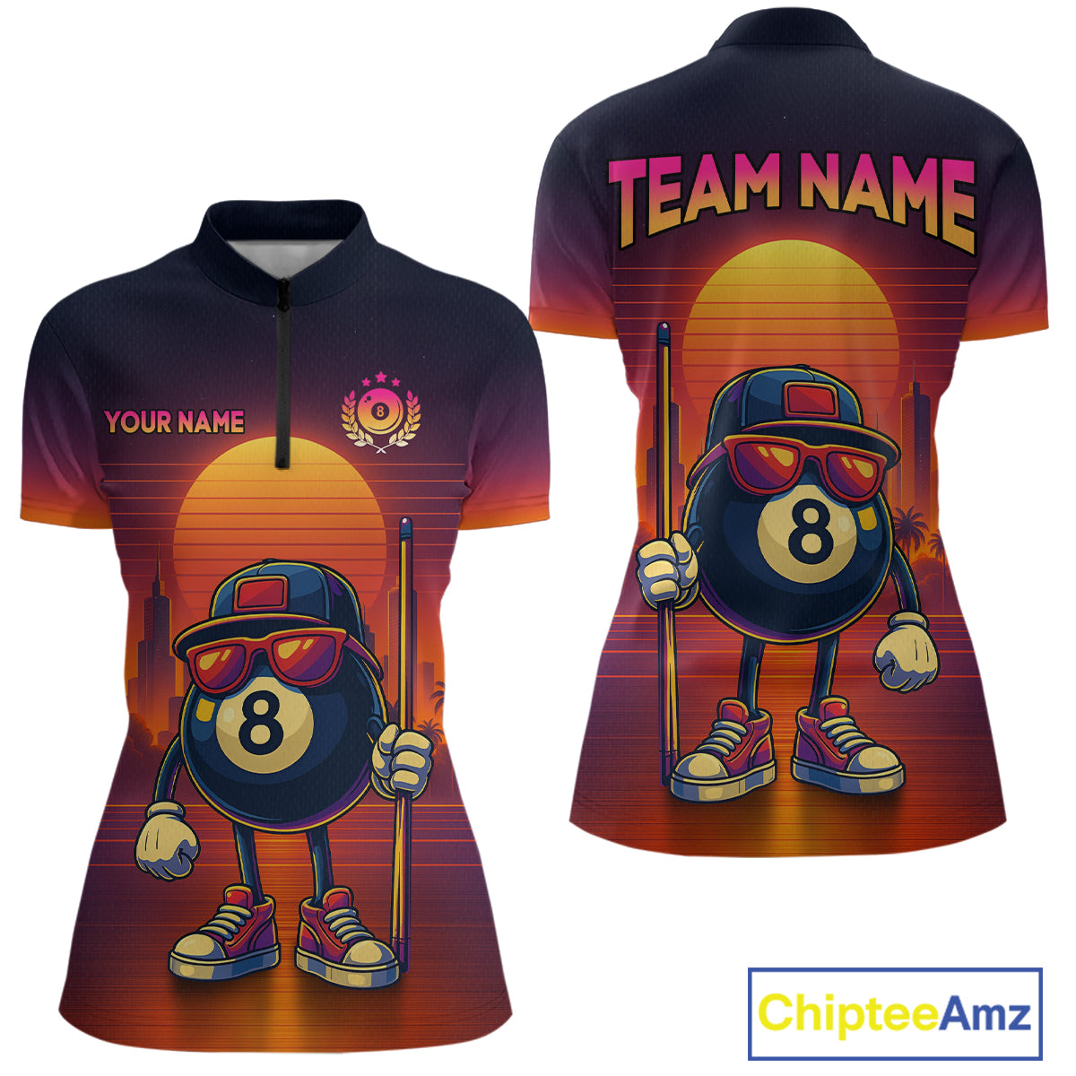 Custom Funny 8 Ball Retro Billiard Shirts for Women Billiard Team Shirts Polo & 1/4 Zip NNT93