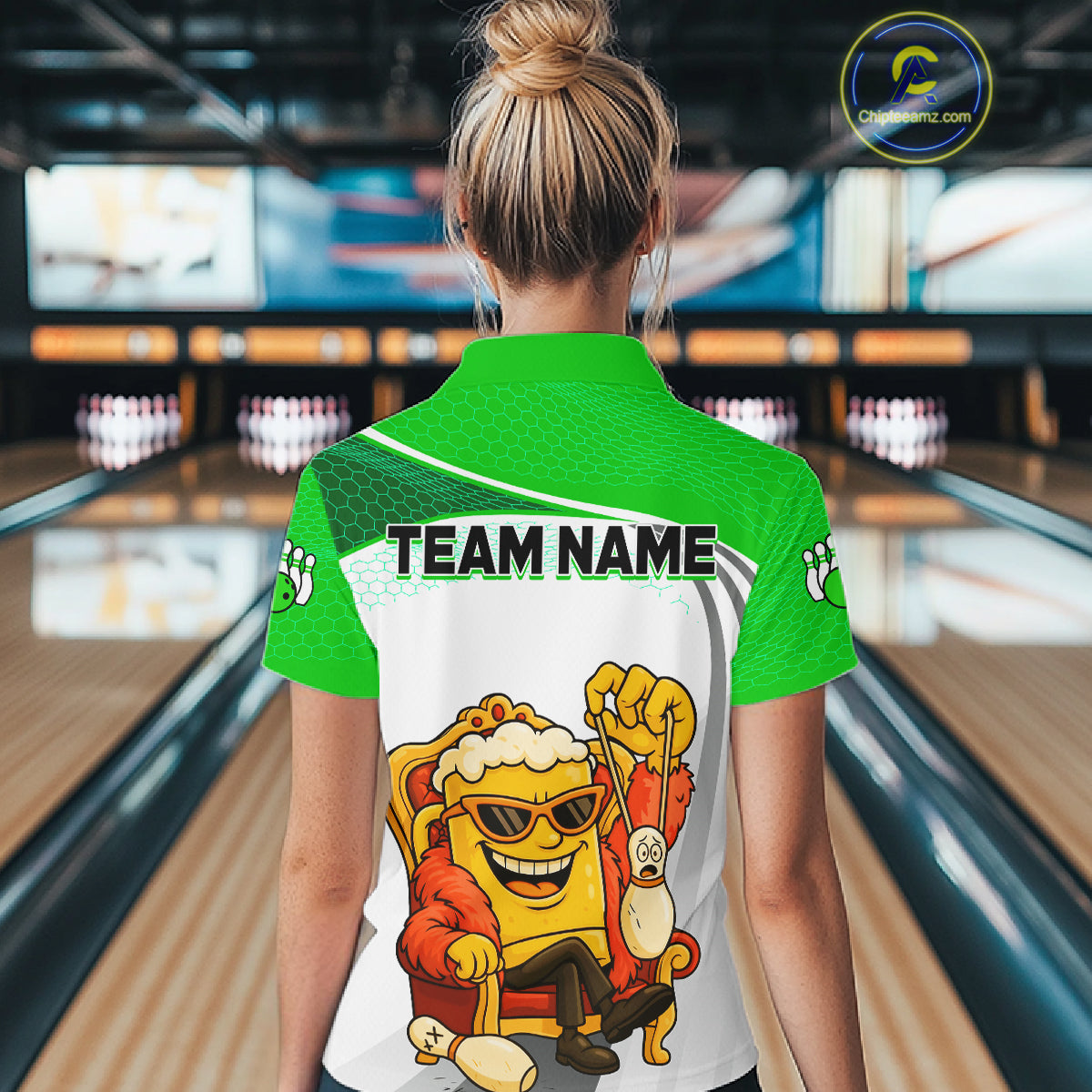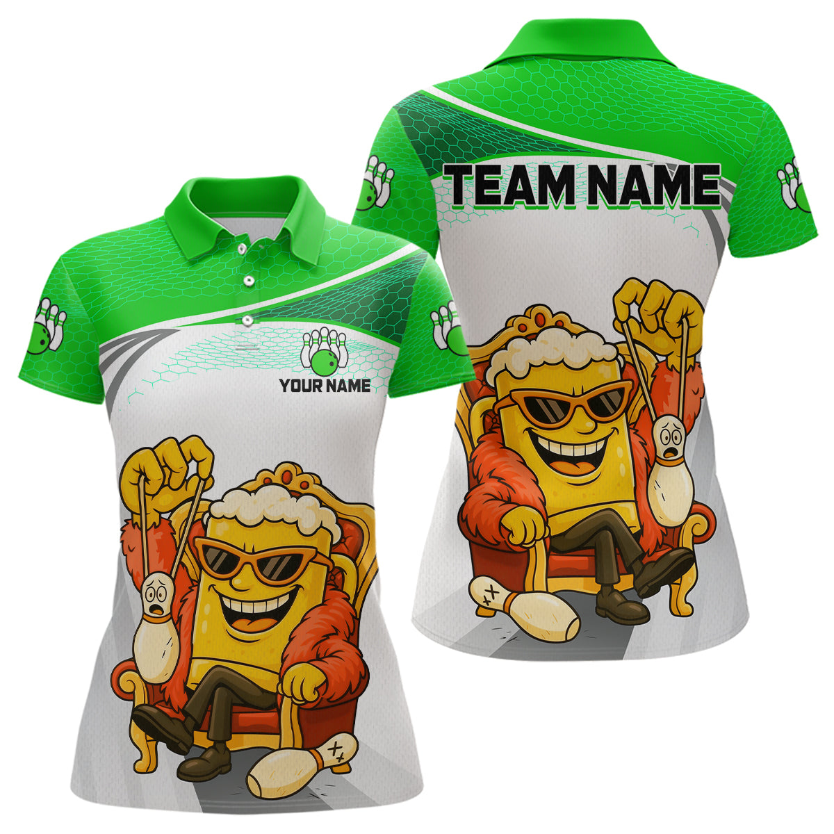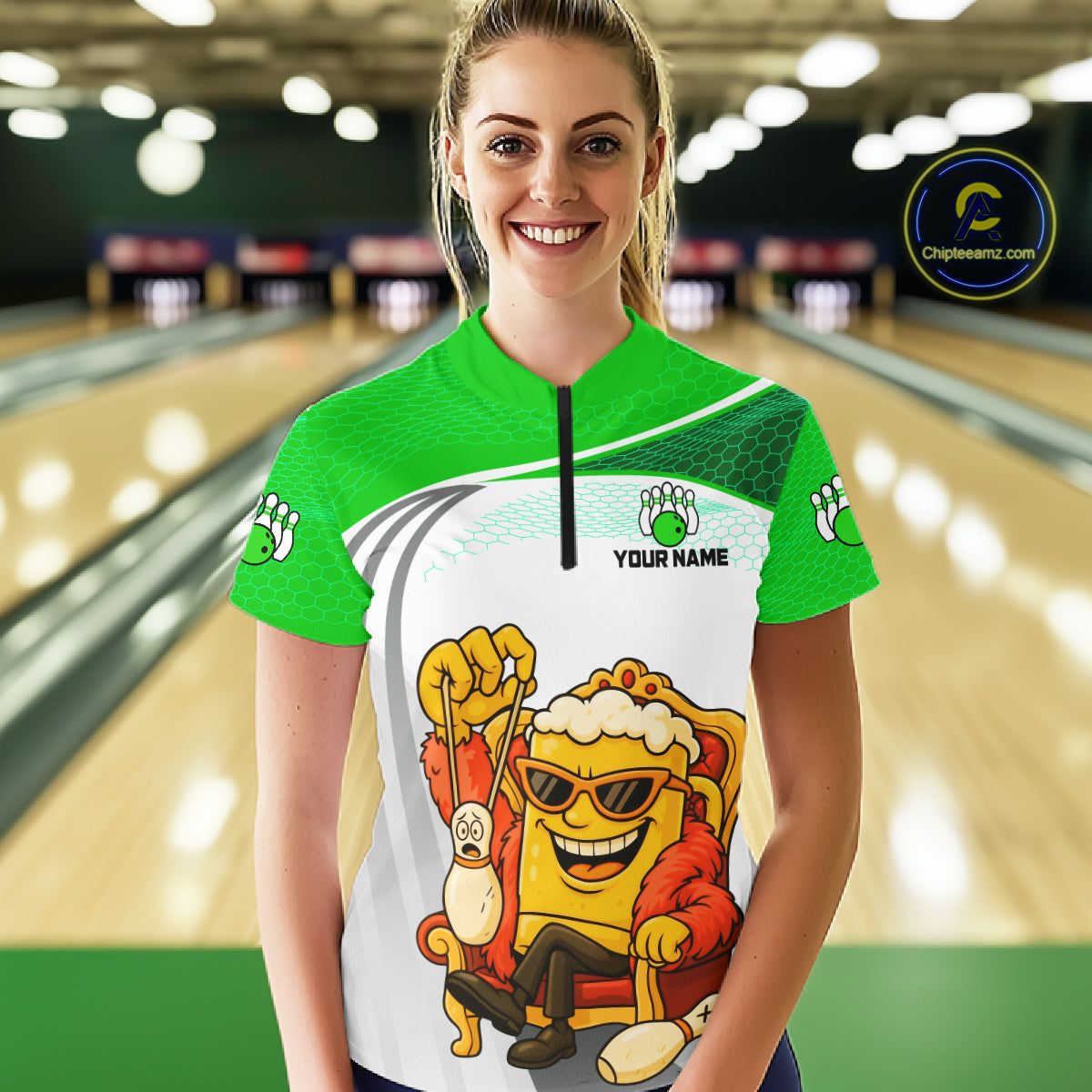 Custom Funny Green Beer Polo Bowling Team Shirt for Women Quarter-Zip Bowling Jersey Outfit QZT820