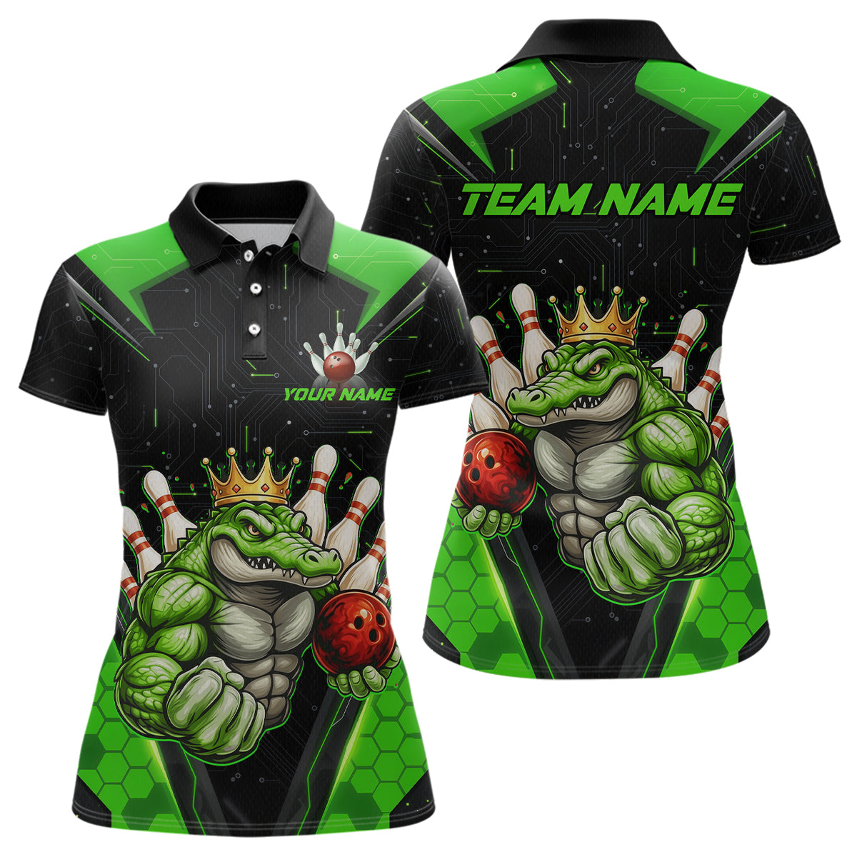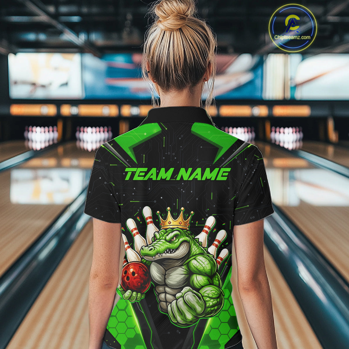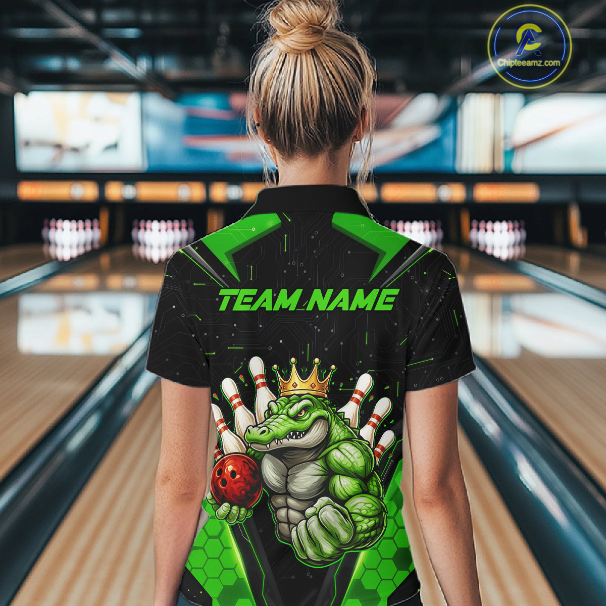 Custom Funny Green Crocodile Bowling Shirt Alligator Bowling Jersey for Women Polo & 1/4 Zip QZT823