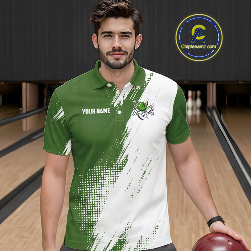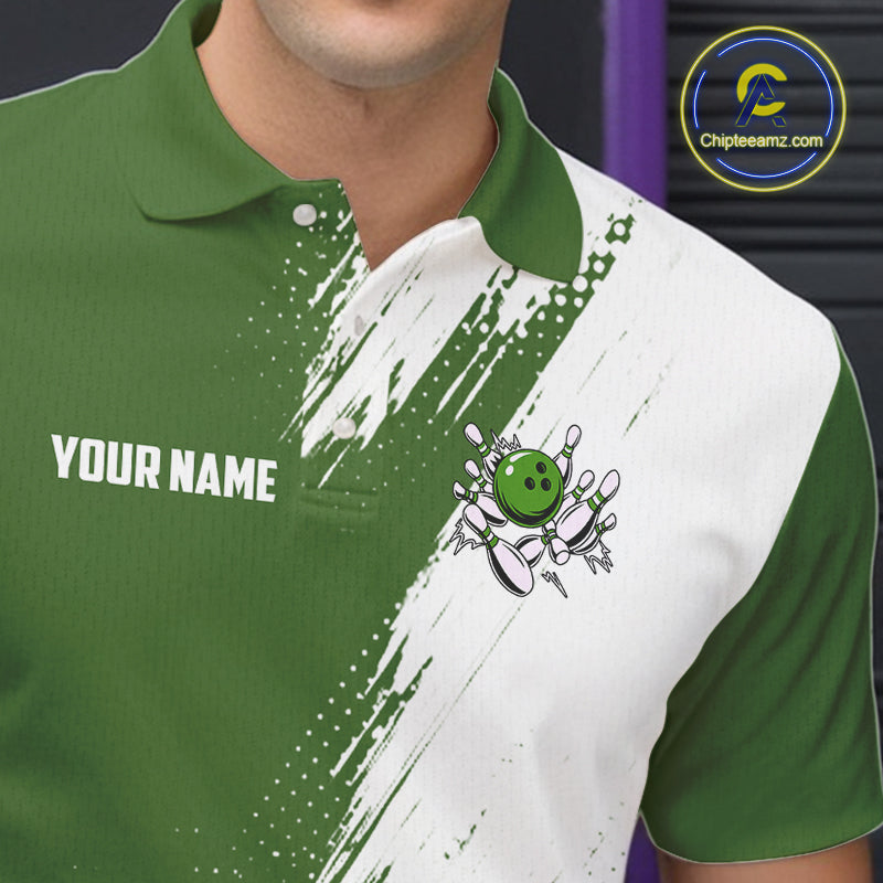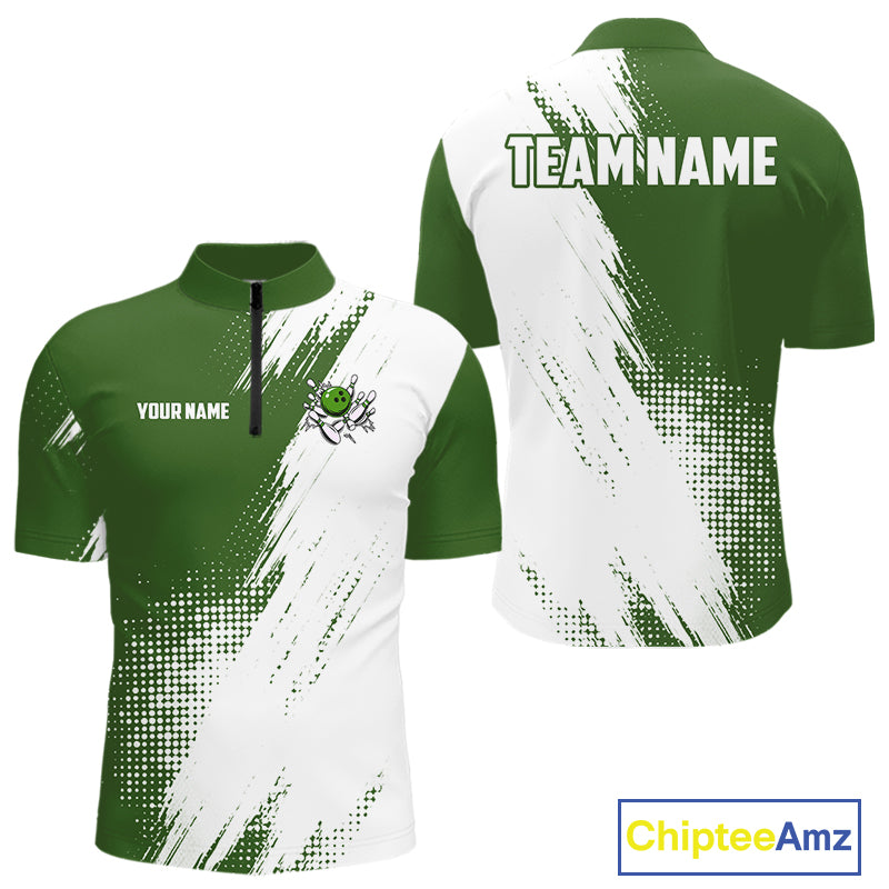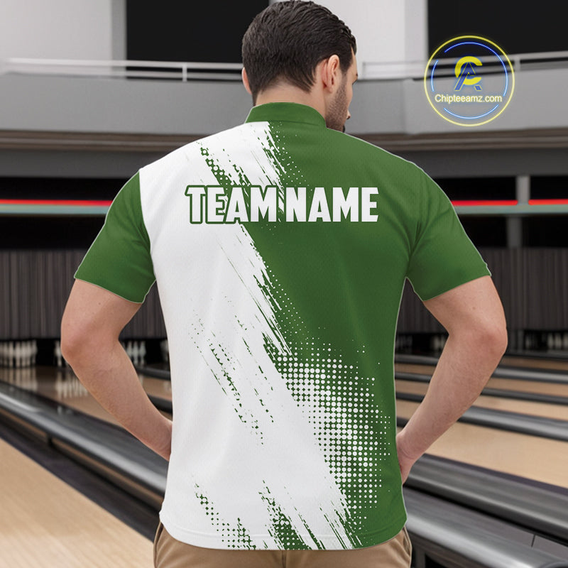 Custom Green and White Strike Bowling Shirts Men Polo, Quarter Zip Bowling Team Jersey Bowling League NQS11037