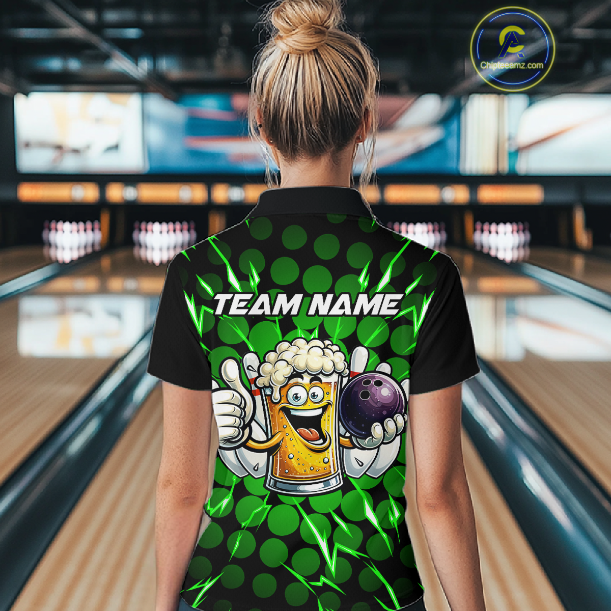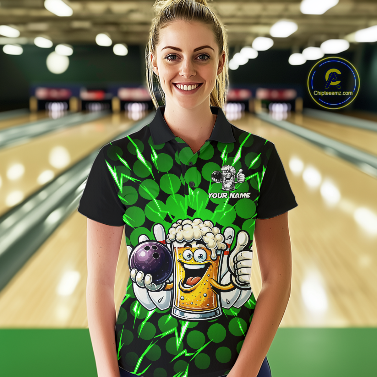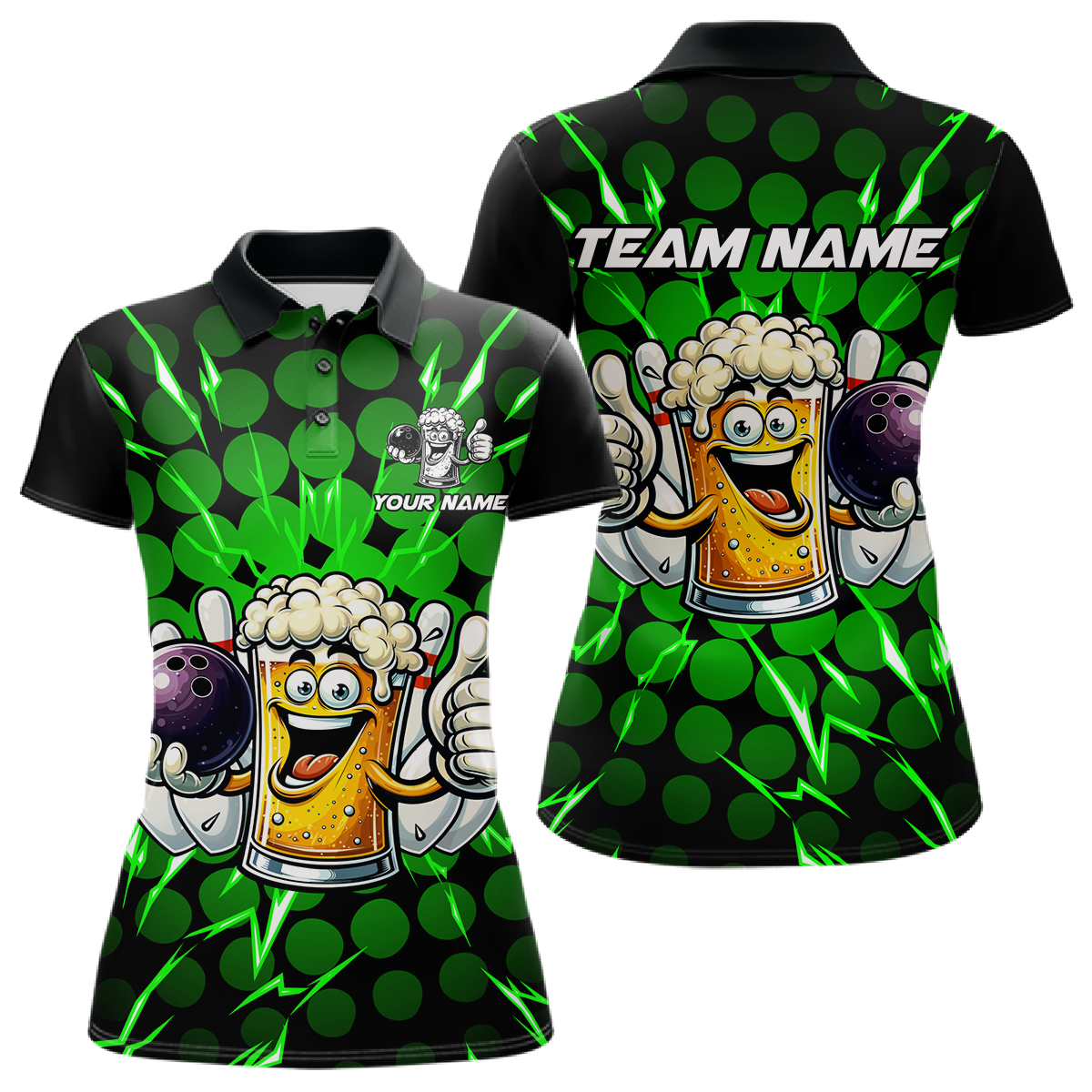 Custom Green Funny Beer Bowling Jersey for Women Bowling Team Shirts Polo & 1/4 Zip HNT187