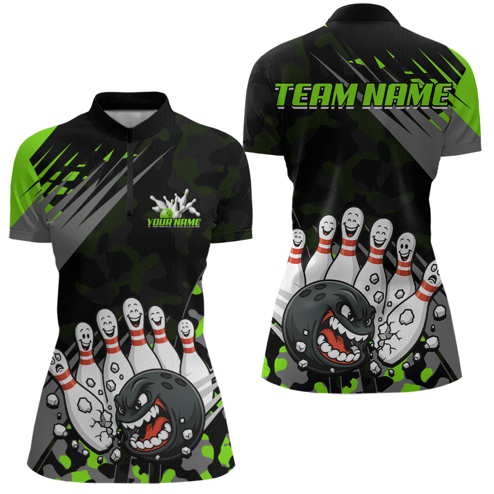 Custom Green Funny Bowling Shirt Crazy Bowling Jersey Women Polo & 1/4 Zip Bowling Outfit QZT785
