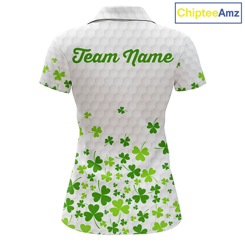 Custom Green shamrock pattern matching golf shirt for couples custom St. Patrick's day golf outfit NQS11610