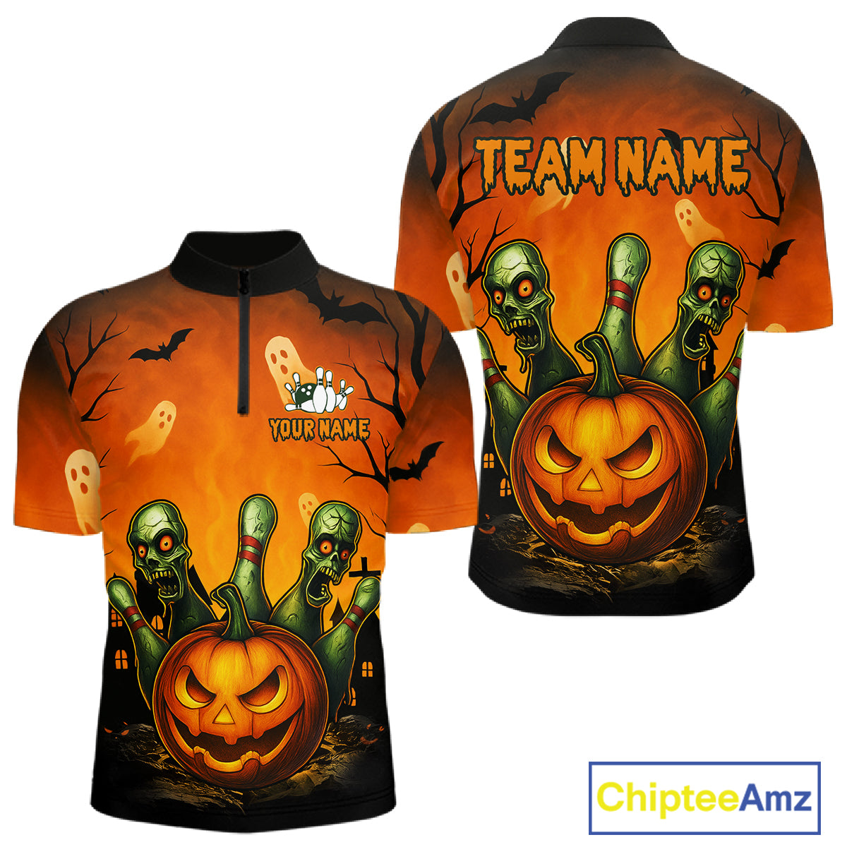 Custom Horror Orange Bowling Team Shirt for Men Funny Pumkin Bowling Jersey Scary Halloween Bowling Outfit QZT774
