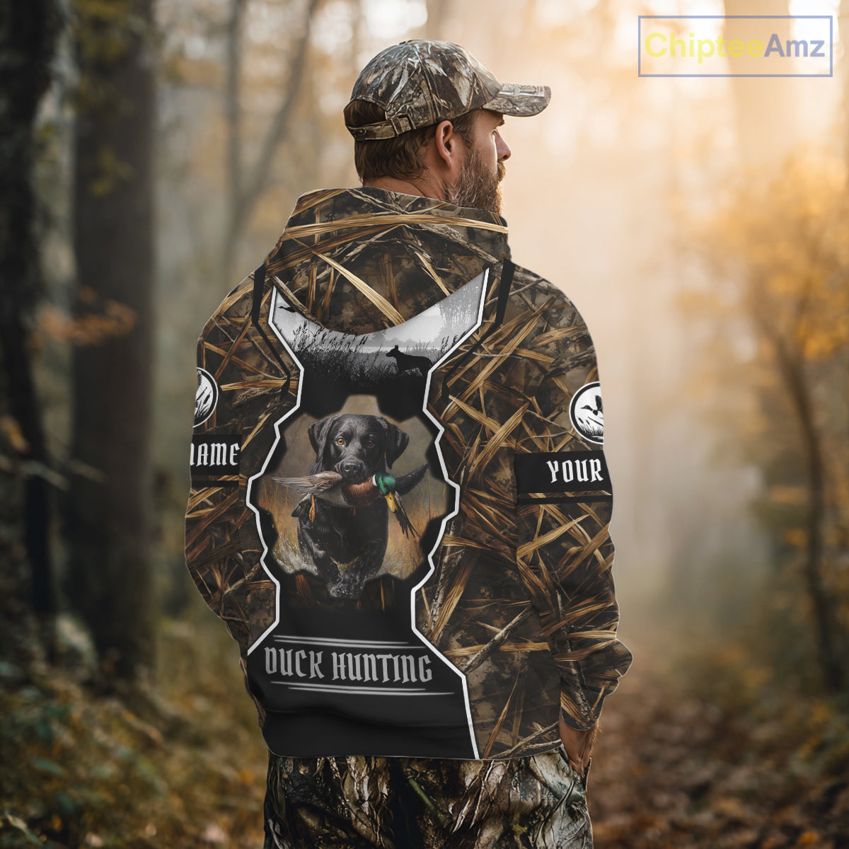 Custom Mallard Duck Black Lab Retriever Hunting Camo 3D Printed Custom Name Shirts, Hunting Gifts NBT189