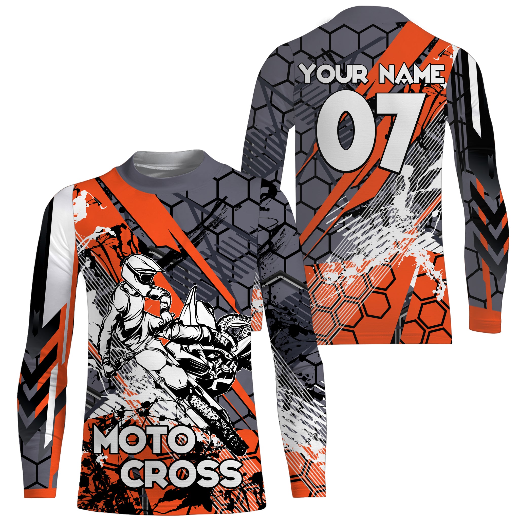 Custom Motocross Jersey Men Kid Women UPF30+ Orange MX Riding Dirt Bike Shirt Off-Road Motorcycle PDT600