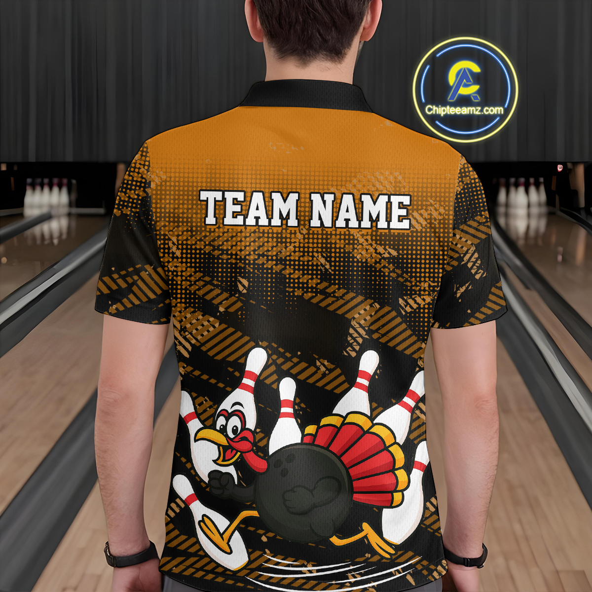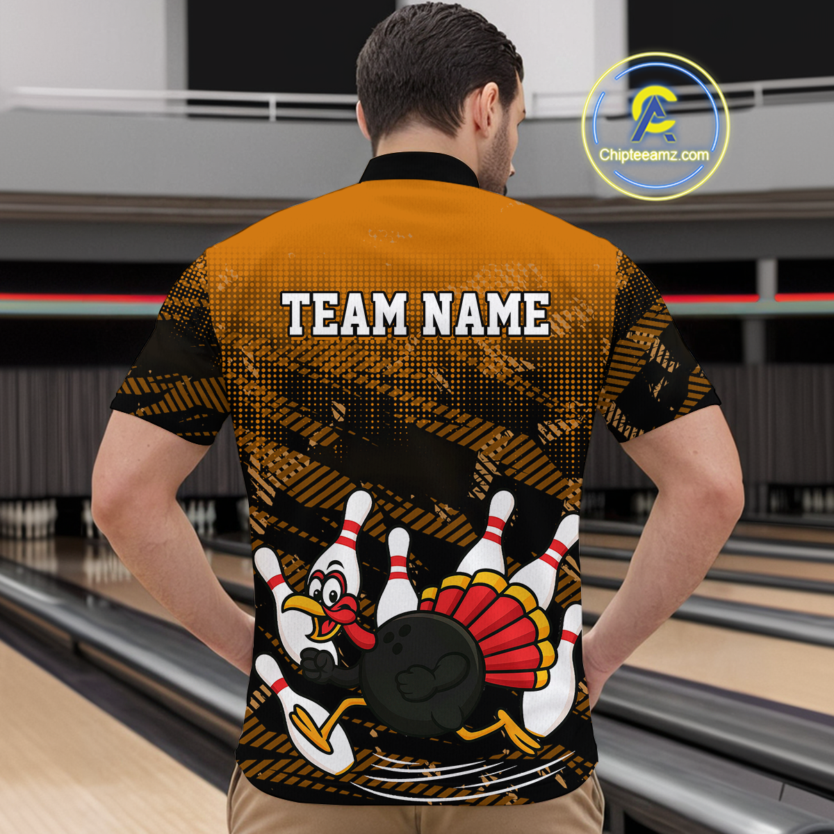 Custom Orange Funny Turkey Bowling Jersey for Men Thanksgiving Bowling Team Shirts Polo & 1/4 Zip HNT125
