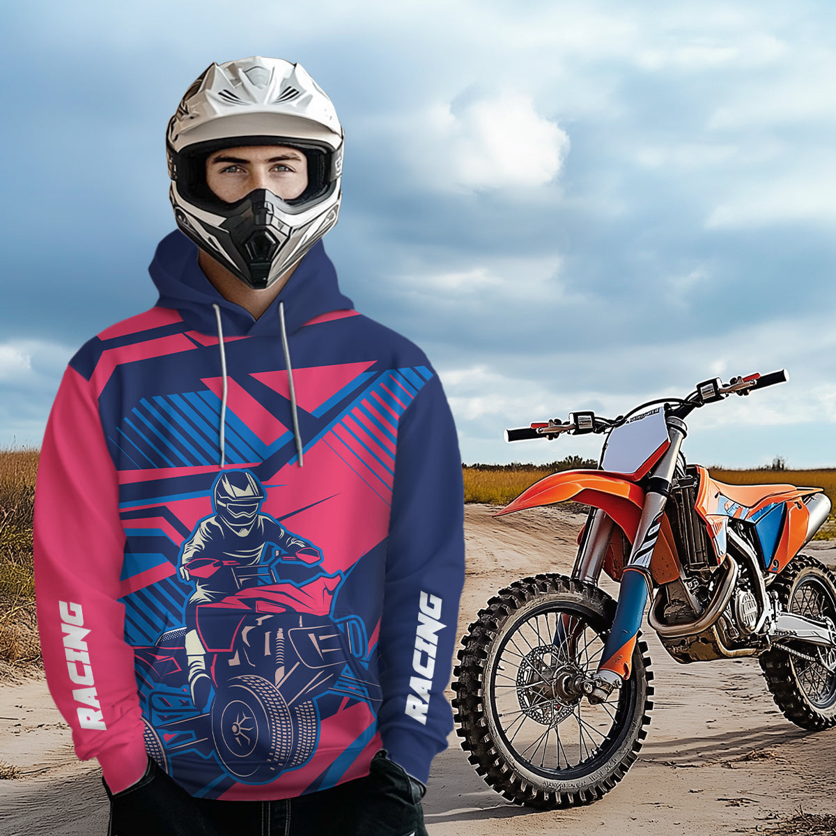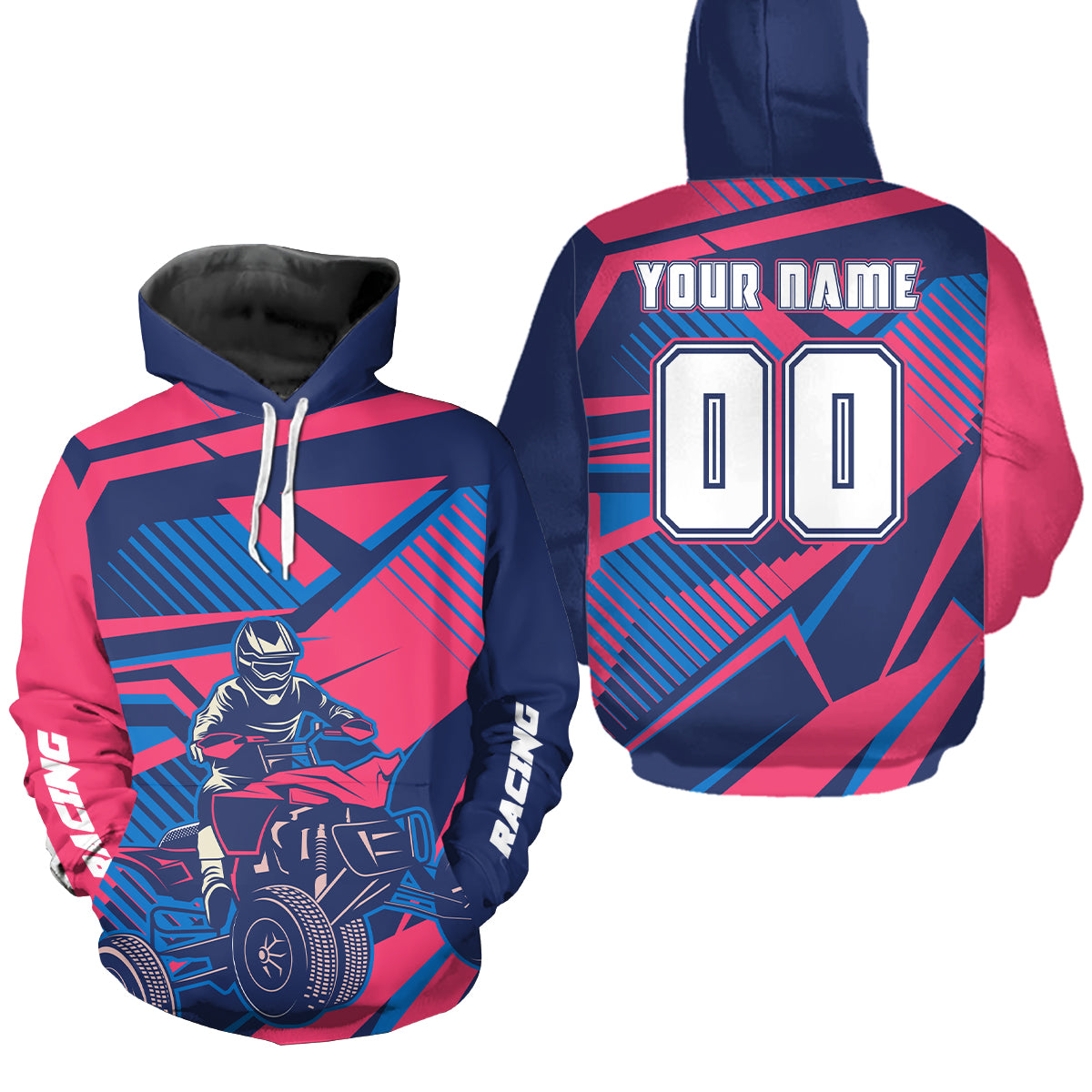 Custom Pink and Blue ATV Motocross Hoodie for Men Women Quad Shirt ATV Hoodie MHATV19