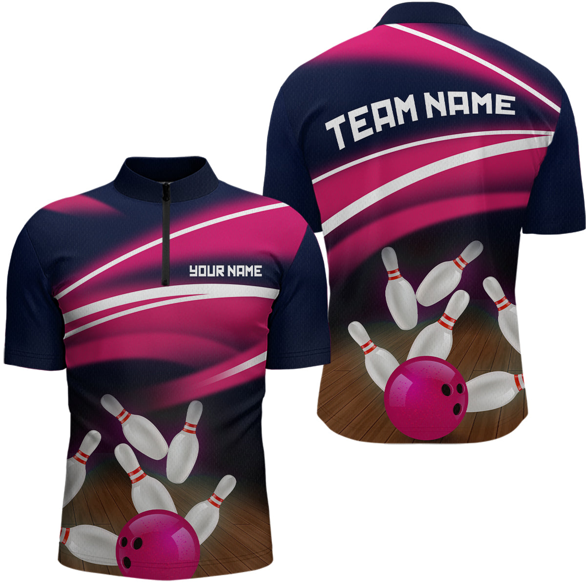 Custom Pink Bowling Jersey Bowling Team Shirts For Men Bowling League Polo & 1/4 Zip HNT163