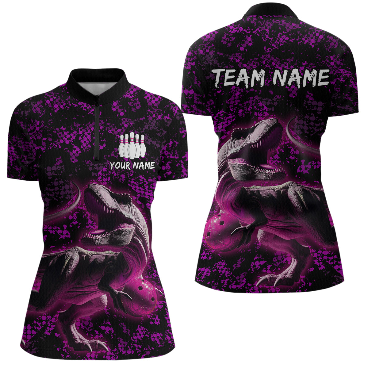 Custom Purple Bowling Shirt Dinosaur Bowling Jersey Quarter Zip Bowling League QZT632