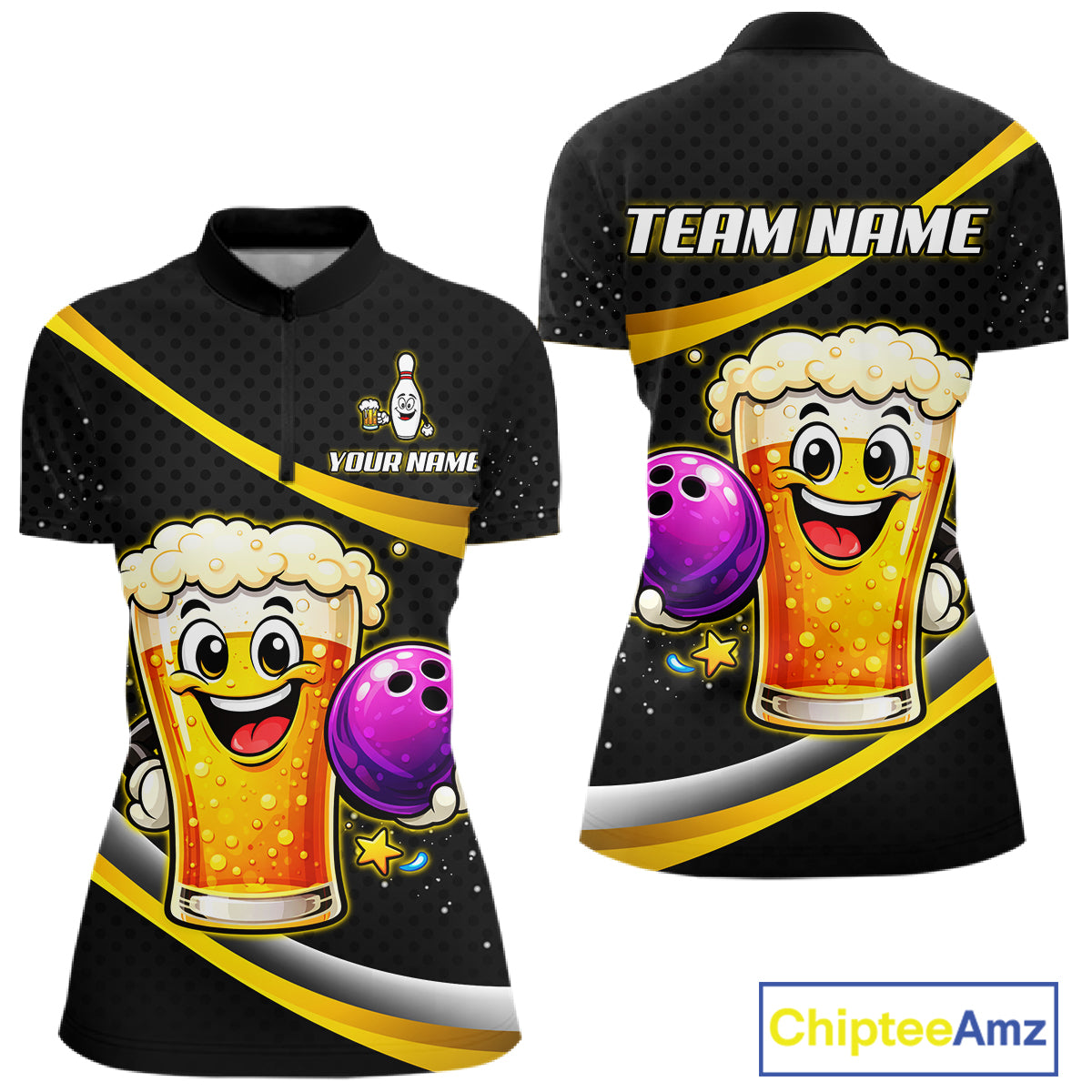 Custom Funny Beer Bowling Bowling Jersey for Women Bowling Team Shirts Polo & 1/4 Zip HNT190