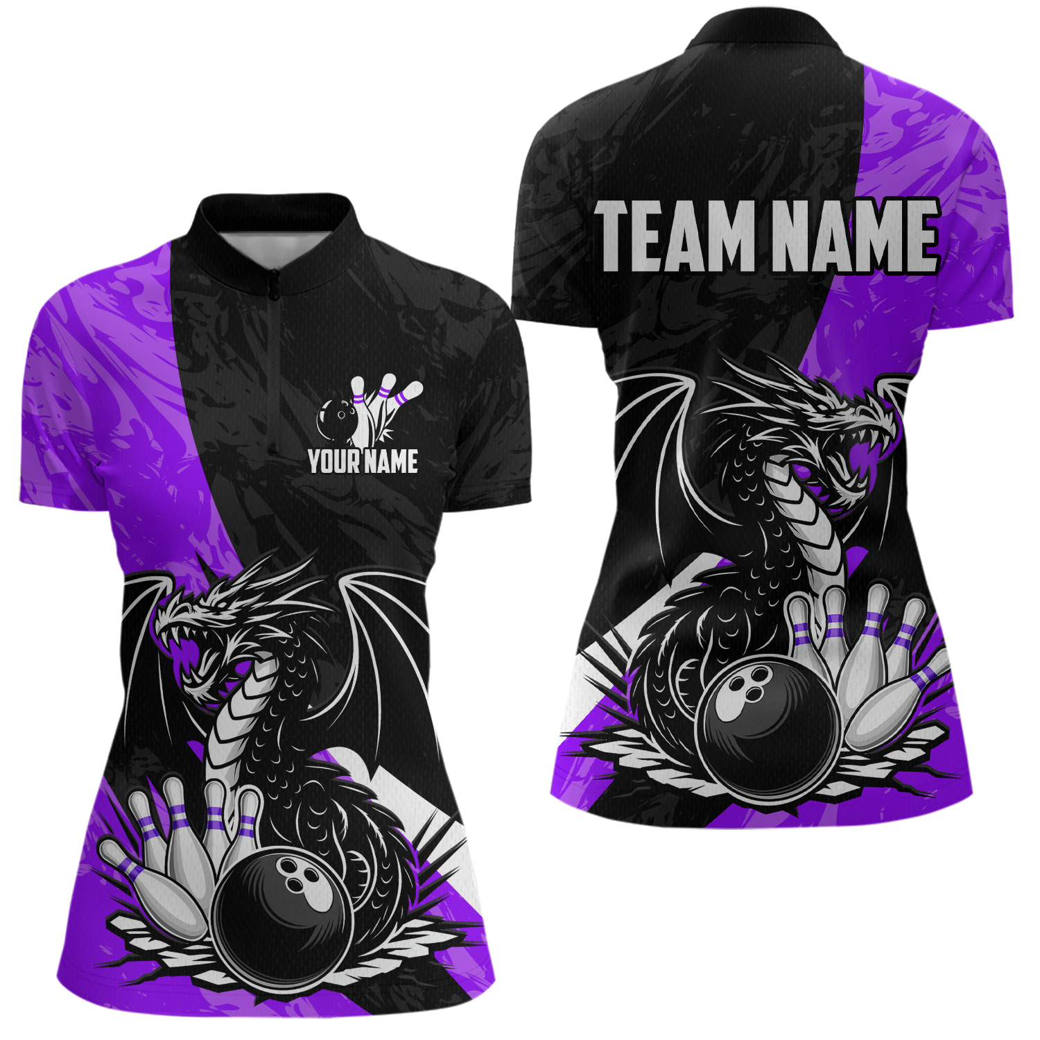 Custom Purple Dragon Bowling Women Shirts Bowling Uniform Polo & 1/4 Zip Bowling Team Jerseys HNT103