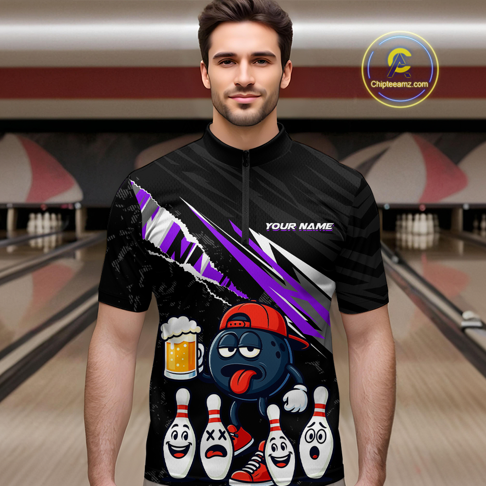 Custom Purple Beer Bowling Jersey for Men Bowling Team Shirts Bowling Uniform Polo & 1/4 Zip HNT133