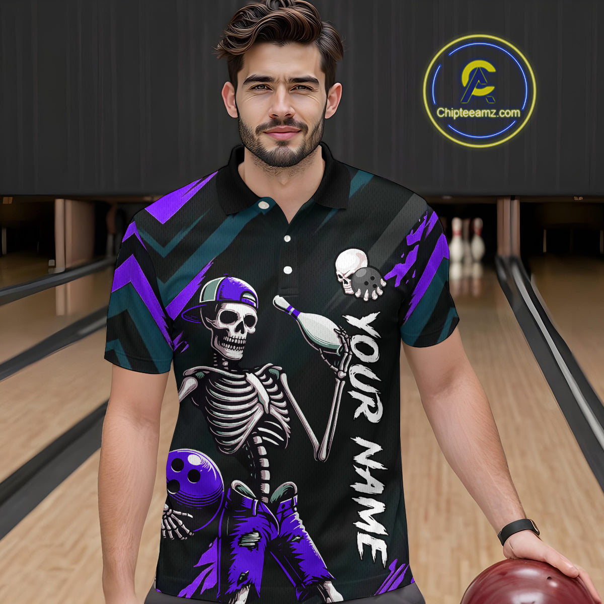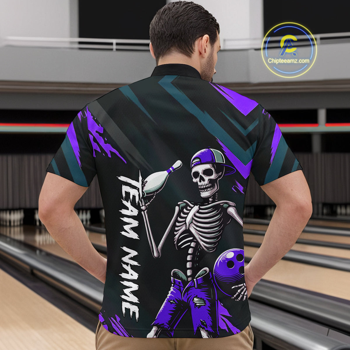 Custom Purple Skull Bowling Team Shirt for Men Polo & 1/4 Zip Bowling League Jersey Bowling Unisex QZT794