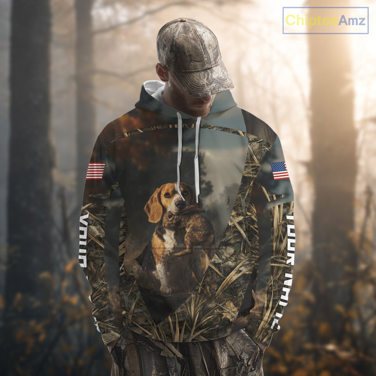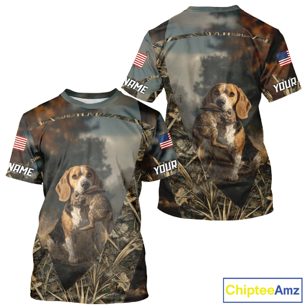 Custom Rabbit Hunting Beagle Dog US Flag Camouflage 3D Shirts, Rabbit Hunting Clothes NBT229